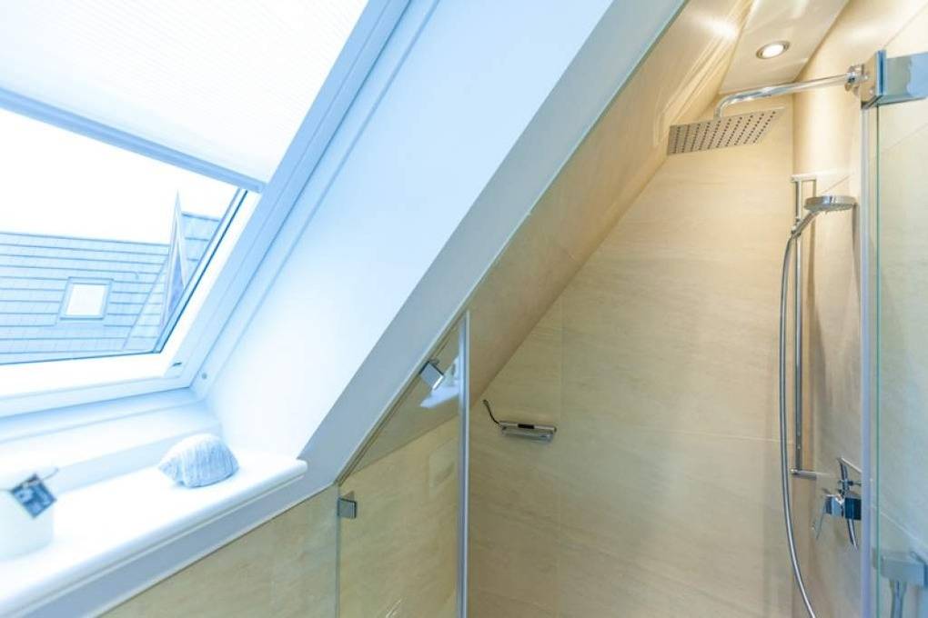 Die neuen Bäder lassen mit moderner Regendusche, Fön, Kosmetikspiegel, Waschtisch, Handtuchwärmer und WC keine Wünsche offen.