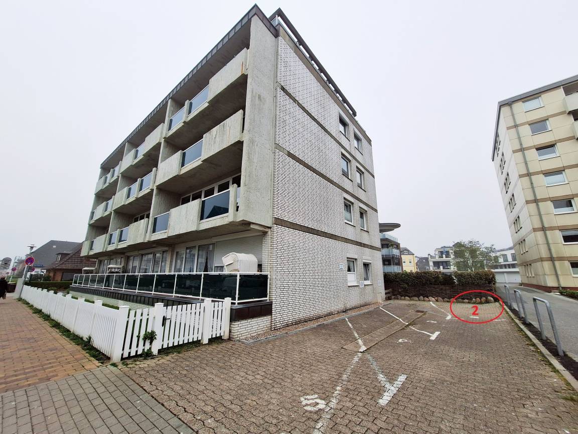 Direkt am Haus befindet sich der bequem befahrbare PKW-Stellplatz Nr. 2, der inklusive ist.