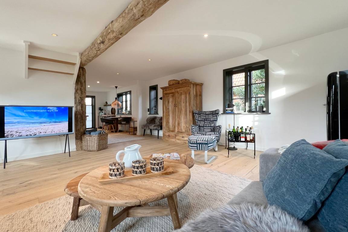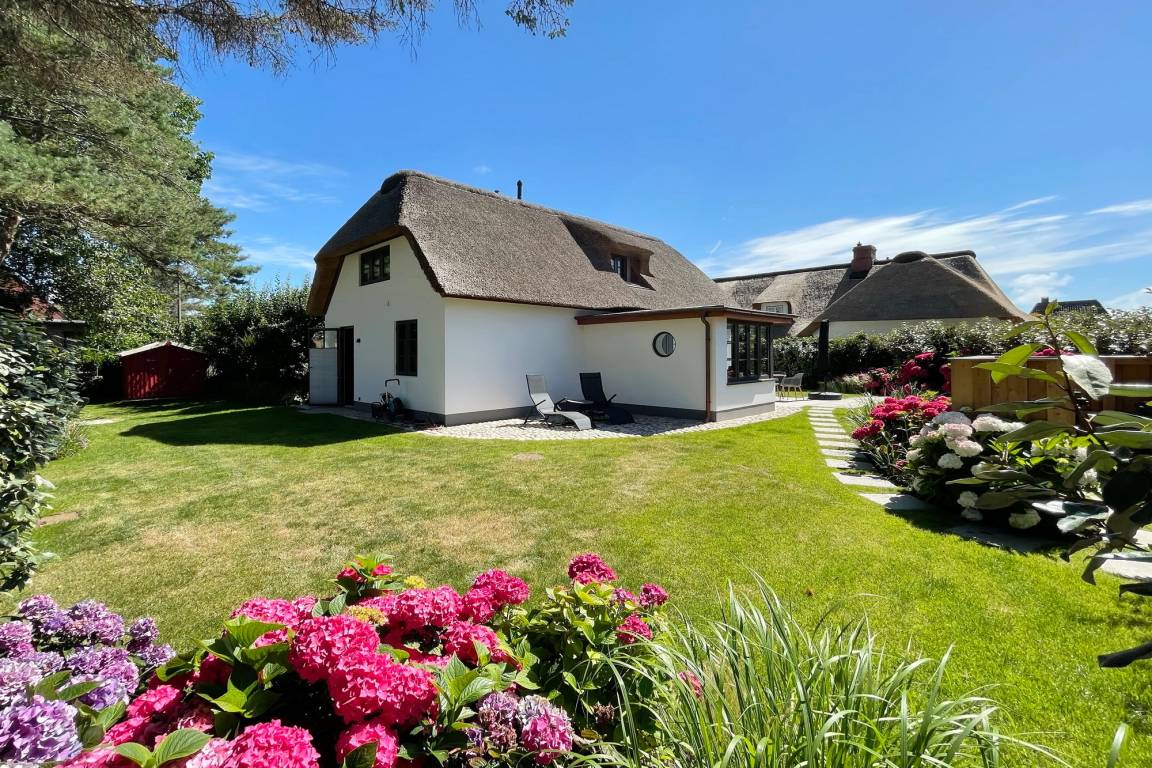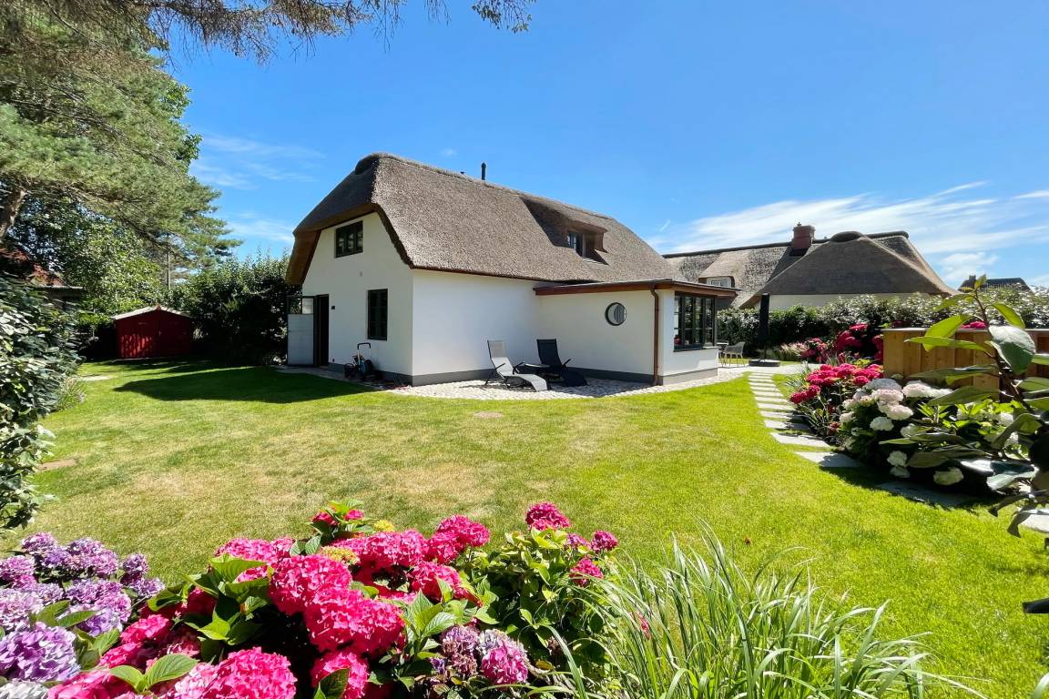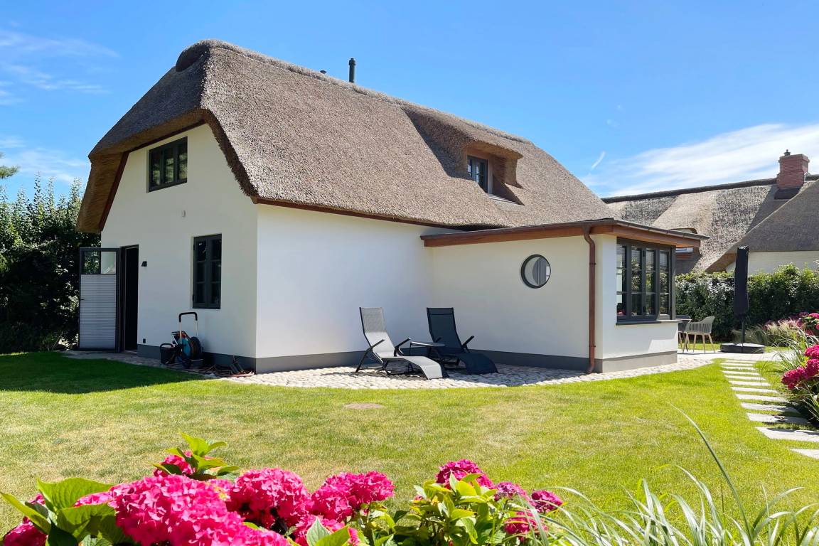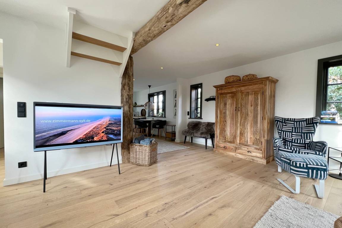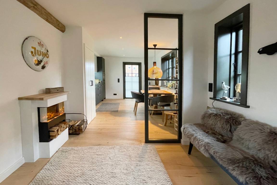 viele exklusive Details im und am ganzen Haus wie der zu 3 Seiten verglaste Erker mit maßgefertigtem Garderobenschrank, Designlampen von der Lichtinsel Sylt auf beiden Etagen, Original Sylter Buhnenholz vom Strand im Wohnbereich, Schreinergefertigte Einbauten im ganzen Haus, Gartenmöbel für 2 Terrassen und Liegestühle.