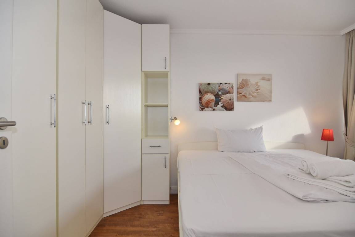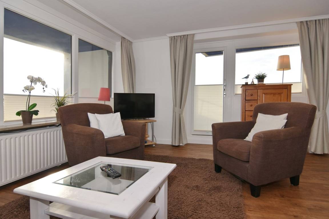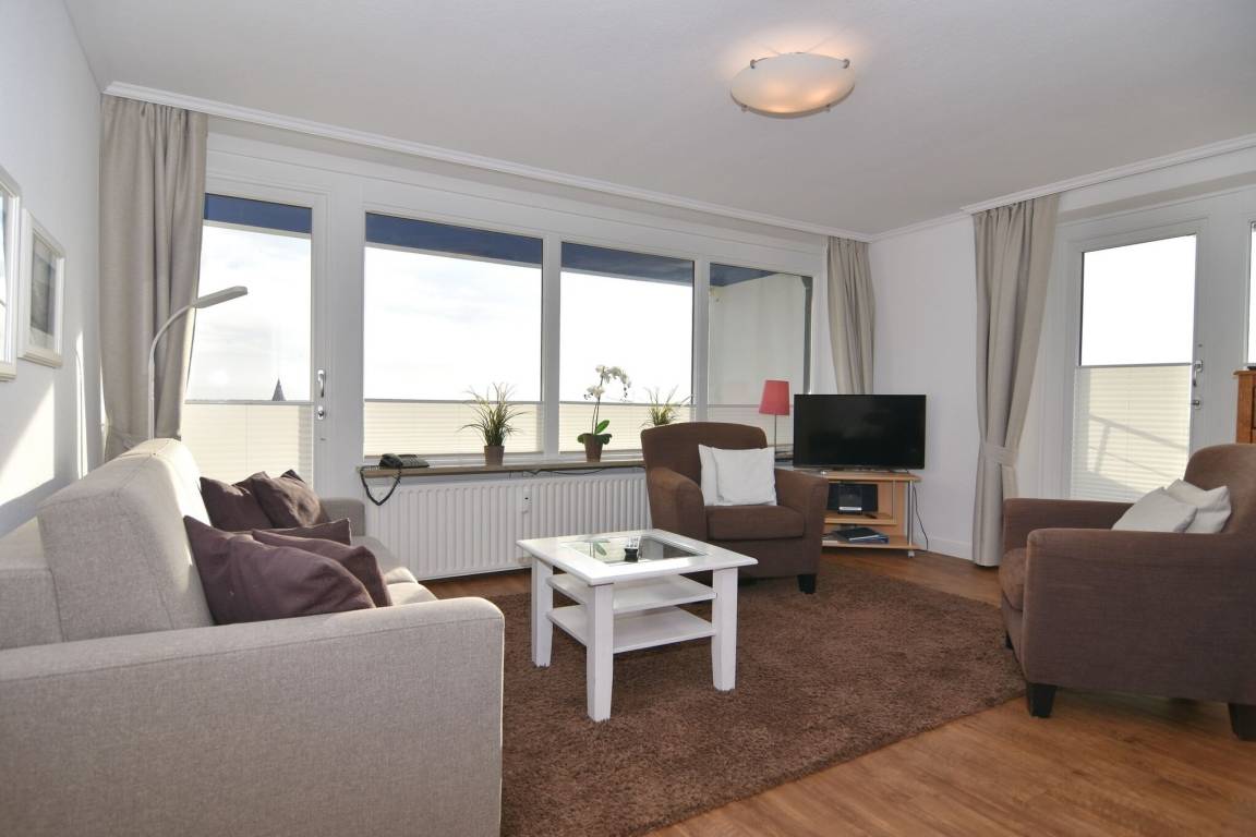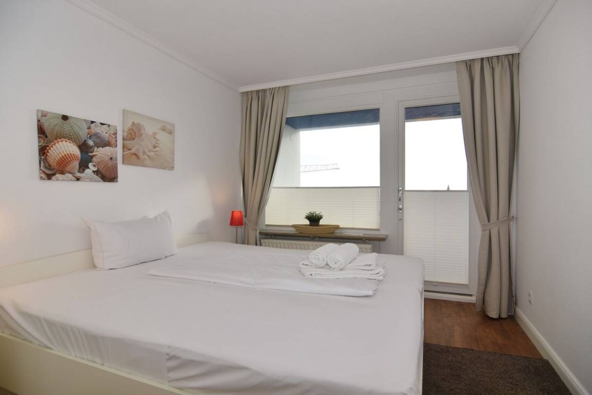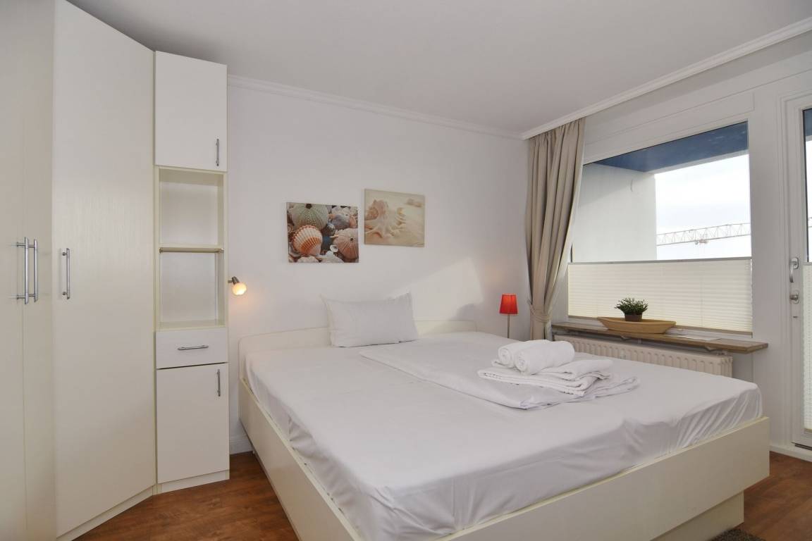 Modernes 2-Zimmer-Apartment im 6. OG ca. 68 m² im "Haus am Meer", Nichtraucher. Wohn-/ Schlafraum mit Doppelschlafcouch (150x195) und 2 Sessel, Essplatz, TV, Radio, DVD und CD-Player, Telefon, Ostbalkon und Südbalkon mit Blick auf das Meer, Schlafzimmer mit Doppelbett (2x90x200) und Ostbalkon, offene Küche mit Geschirrspüler, Backofen und Mikrowelle mit Grillfunktion, Duschbad/ WC. W-LAN ( ohne Gewähr ).Die Wohnung ist mit Laminat ausgelegt. Tierhaltung ist nicht gestattet. PKW-Stellplatz/Garage kann kostenpflichtig gebucht werden. Bettwäsche und Handtücher sind zur Anreise aufgezogen.