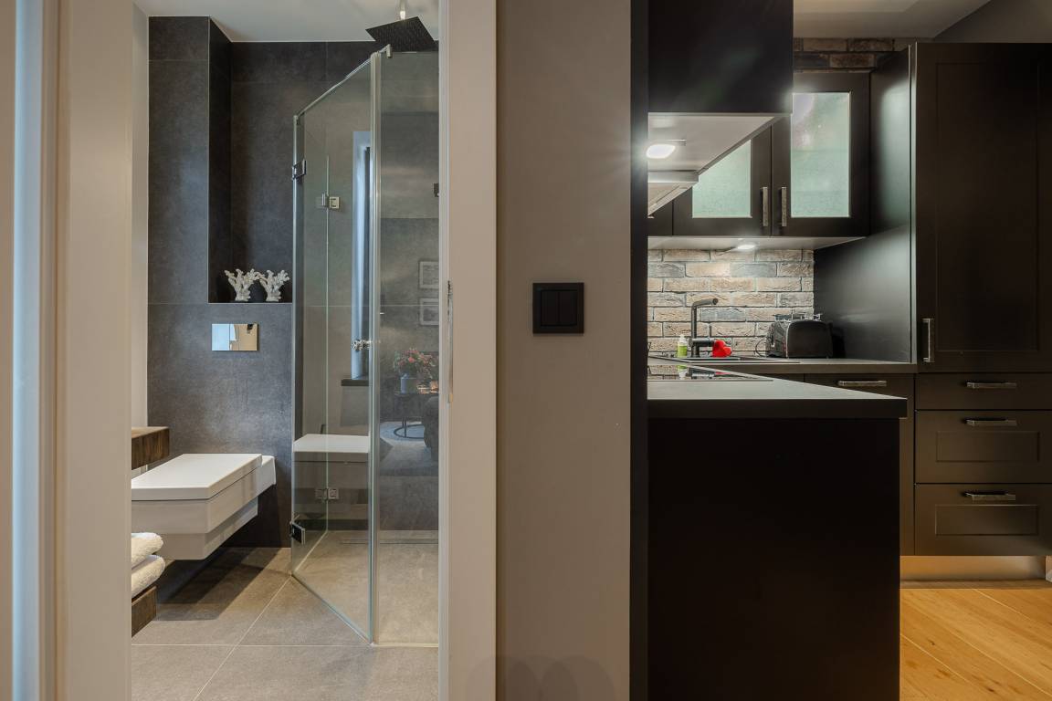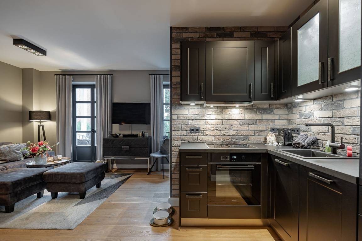 Die offene Küche ist mit exklusiven Geräten von Miele und Gaggenau ausgestattet und lässt keine Wünsche offen – perfekt für ein entspanntes Frühstück oder ein gemeinsames Abendessen. Ein besonderes Highlight ist die eigene Terrasse in Ostausrichtung: Hier genießen Sie morgens Ihre erste Tasse Kaffee in der Sonne oder lassen den Tag ruhig beginnen.