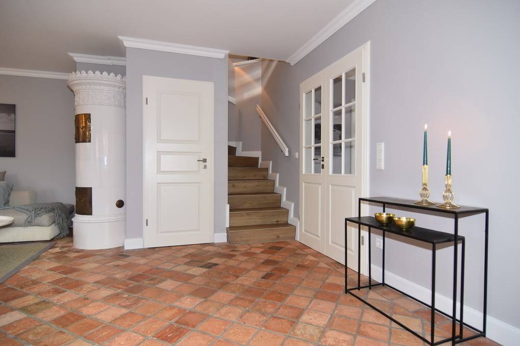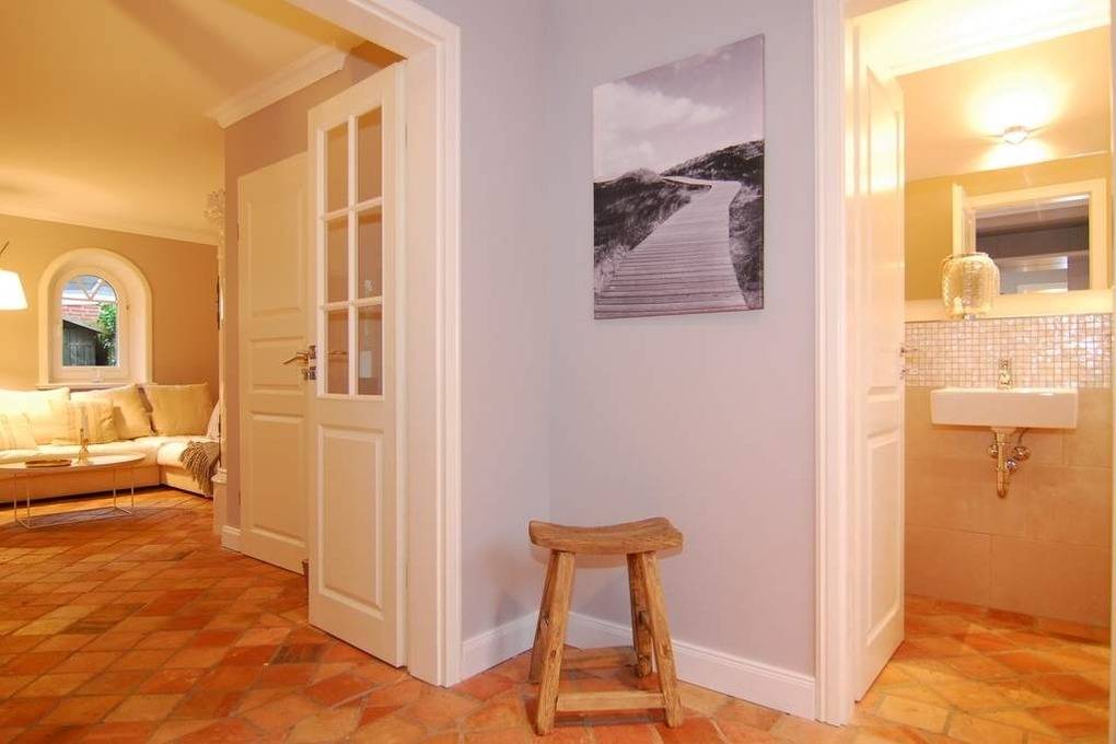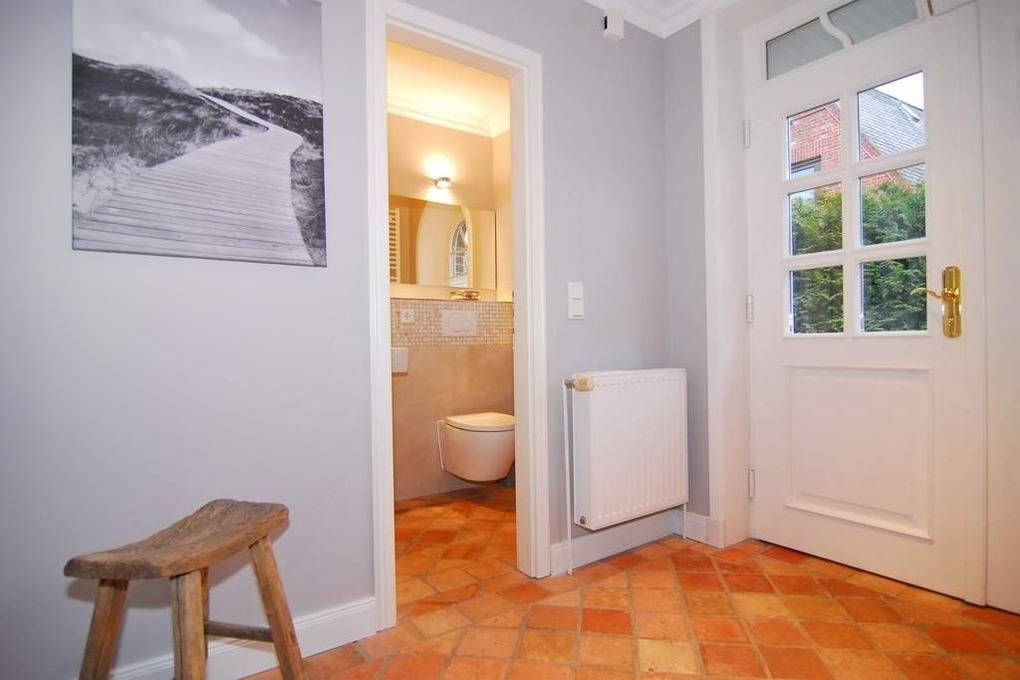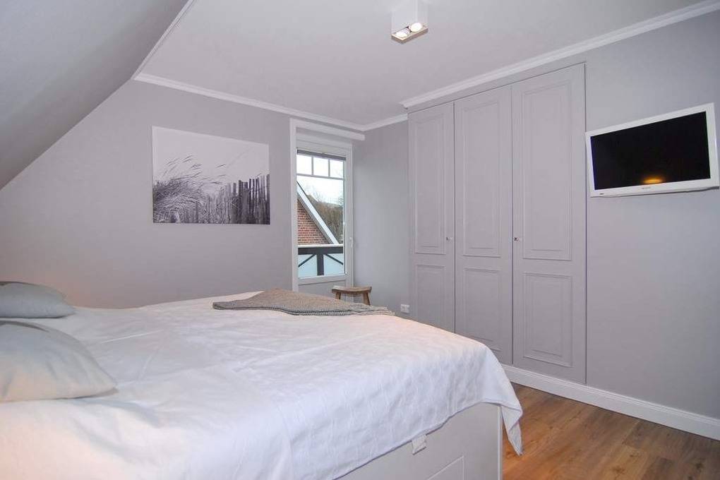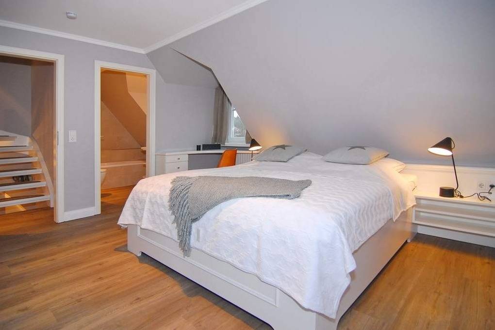 Exklusive Doppelhaushälfte. Nichtraucher-Haus! EG: großzügiges Wohn-und Esszimmer mit Kaminofen, Sofaecke, Esstisch für 6 Personen, W-LAN (ohne Gewähr), 2 Terrassen (Süd+West), Strandkorb (Apr.-Okt.), offene Küche mit Geschirrspüler, Mikrowelle und Backofen, (Abzug bitte Fenster öffnen) Fußbodenheizung, Gäste-WC und Diele. OG: 2 Schlafzimmer mit Doppelbetten und gemeinsamen Südbalkon, 1 Duschbad/WC mit Waschmaschine und 1 Wannenbad/WC DG: 1 Schlafzimmer mit 2 Einzelbetten. Ein Pkw-Stellplatz befindet sich am Haus. Bettwäsche und Handtücher sind zur Anreise aufgezogen. Tierhaltung ist nach Anmeldung gestattet.