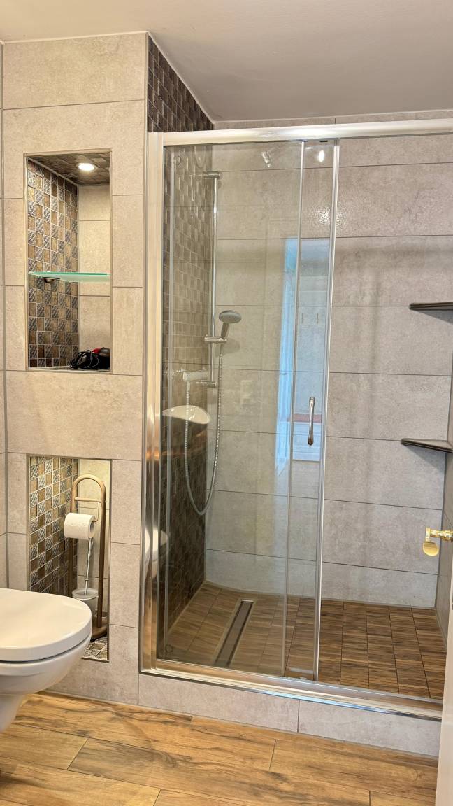 - das Bad mit großzügiger Dusche und Handtuchheizung,