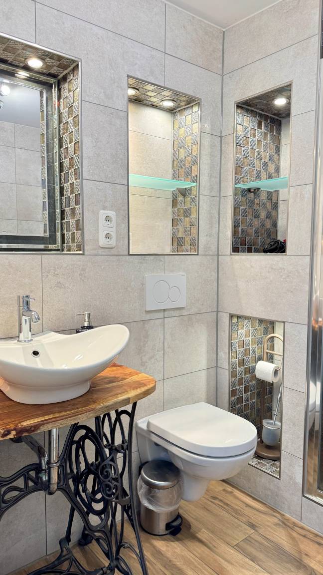 - ausgestattet mit italienischen Fliesen und angefertigtem Design Waschtisch
