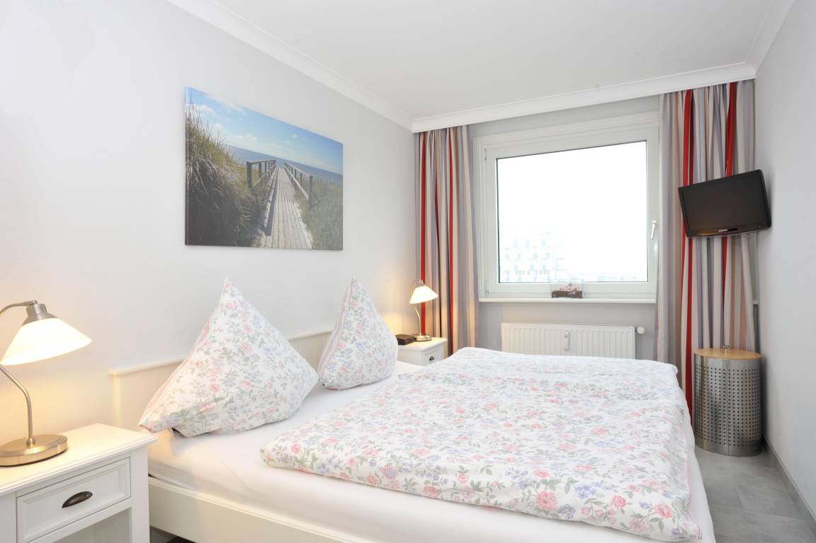 Im Schlafzimmer befindet sich ein Einbauschrank und ein Doppelbett sowie auch hier ein Flat-TV.