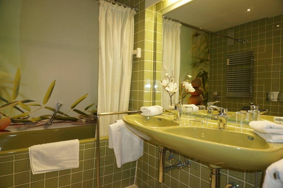gemütliches Bad mit Dusche, Badewanne, Doppelwaschbecken und WC