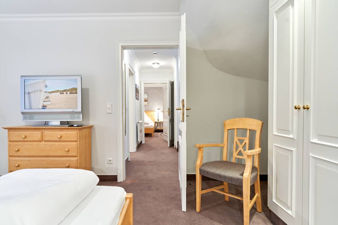 Zwei Doppelbettschlafzimmern, ein Schlafzimmer mit Einzelbett, und ein begehbarer Kleiderschrank.