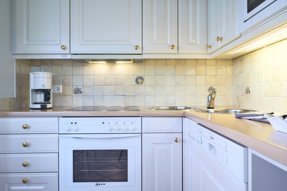 Angekommen in der modernen Wohnung, erwartet Sie das helle, lichtdurchflutete Wohnzimmer mit der komplett ausgestatteten Küche.