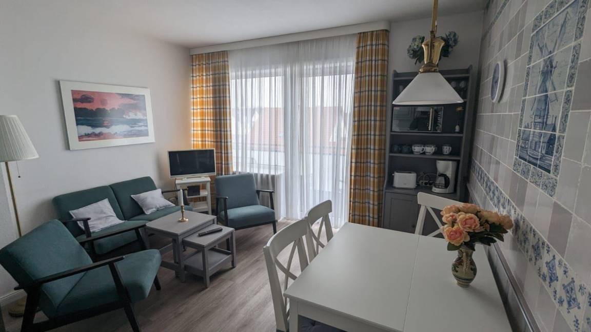 Die Wohnung ist sehr zentral, aber trotzdem ruhig gelegen. Fußlaufweite zum Südstrand sowie zur Einkaufsstraße betragen ca. 5 min.