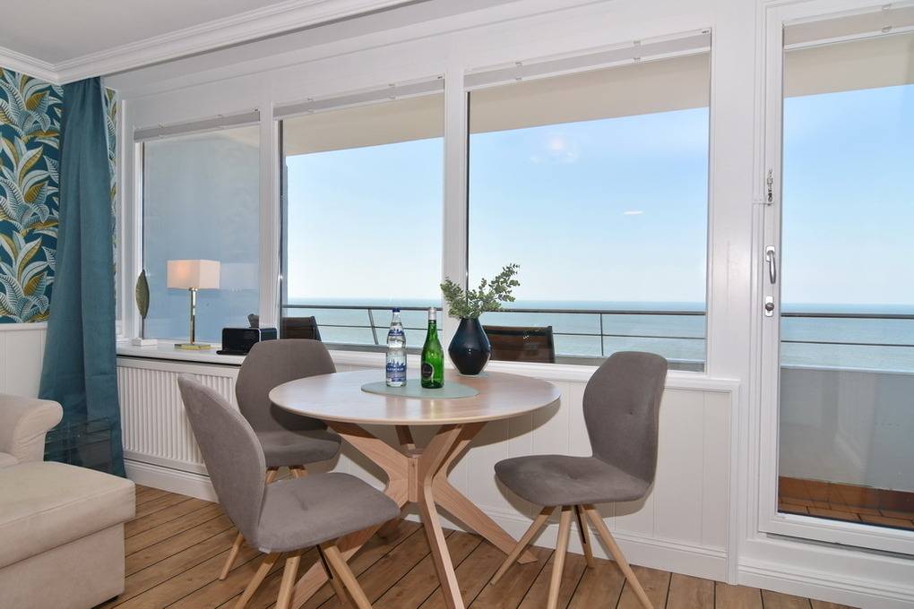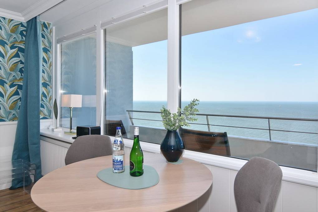 Exklusives 1-Zimmer-Apartment im 13.OG des Haus "Metropol" mit Nordseeblick. Ca. 43 m², Nichtraucher. Großes Wohn- und Schlafzimmer mit eingebautem Doppelbett (160x200), gemütliche 2-Sitzercouch mit Hocker + Schaukelstuhl, Essplatz am Fenster, TV, Radio, W-Lan (ohne Gewähr). Neues Badezimmer mit Dusche sowie neue, separate Küche mit Mikrowelle und Geschirrspüler. Aus beiden Räumen können Sie auf das Meer blicken. Tierhaltung ist nicht gestattet. Bettwäsche und Handtücher sind zur Anreise aufgezogen. Ein PKW-Stellplatz kann kostenpflichtig zugebucht werden.