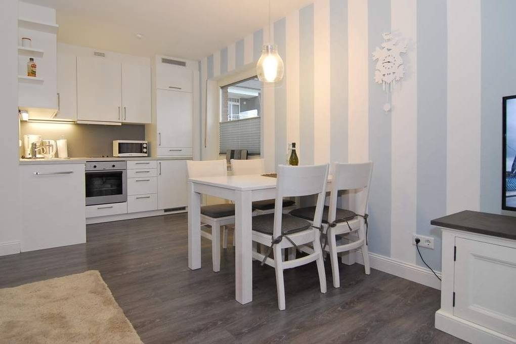 Exklusive 2-Zimmer-Ferienwohnung im Haus "Belvedere". Nichtraucher-Whg.! Ca. 60m², 2.OG/ DG. 2. OG Wohnzimmer mit Schlafcouch und Sessel, Essplatz, integrierter Küche mit Geschirrspüler, Mikrowelle/ Backofen, Flat-TV mit DVD, Stereo-Anlage mit CD und Ipodstation, W-Lan, Südbalkon mit Balkonmöbeln, Flurbereich mit Garderobe und Duschbad/WC. Treppe vom Flur ins DG: offenes Schlafzimmer mit Doppelbett, Einbauschrank und Atelierfenster gen Osten, Duschbad/WC. Pkw-Stellplatz Nr. 30. Tierhaltung ist nicht gestattet. Bettwäsche und Handtücher sind zur Anreise aufgezogen!
