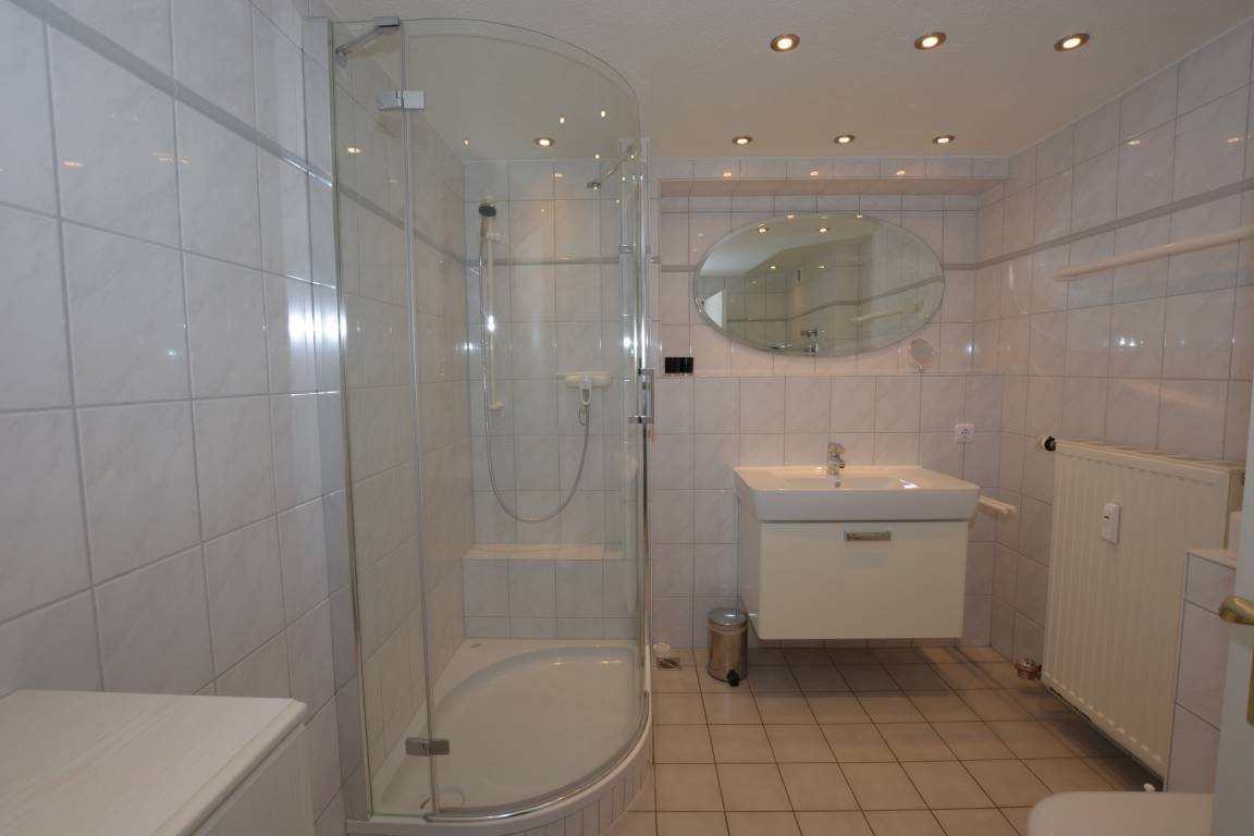 Im weißen, sehr geräumigen Duschbad steht Ihnen eine Waschmaschine zur Verfügung. Im sehr hochwertig eingerichteten Wohnraum haben Sie eine Sitzecke mit einer Doppelschlafcouch,