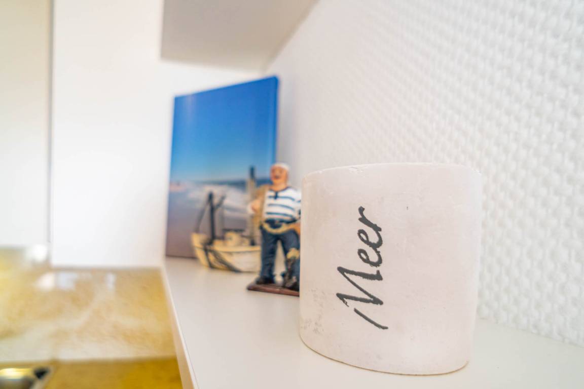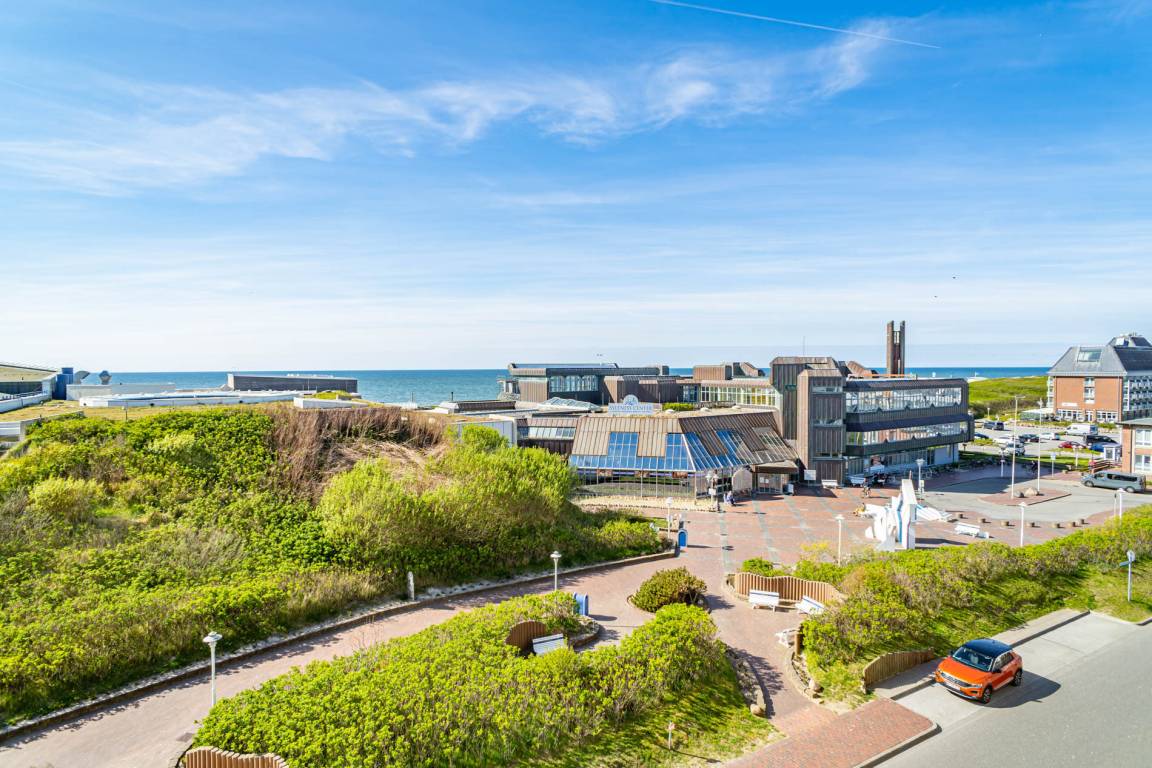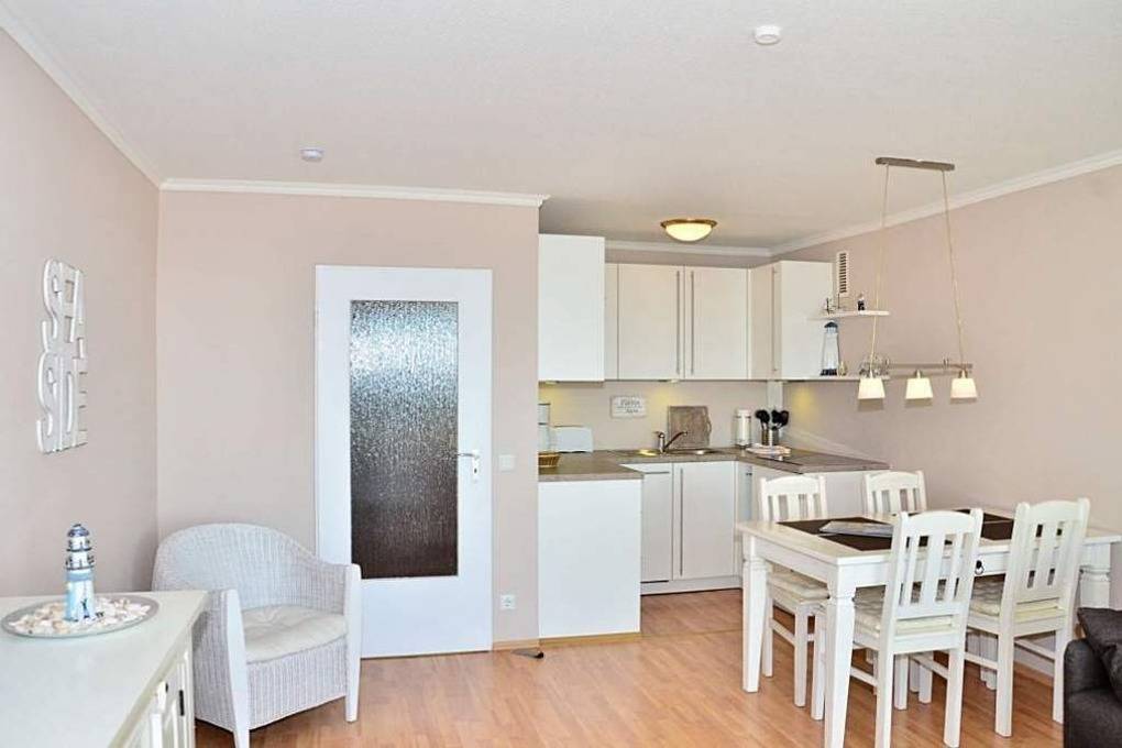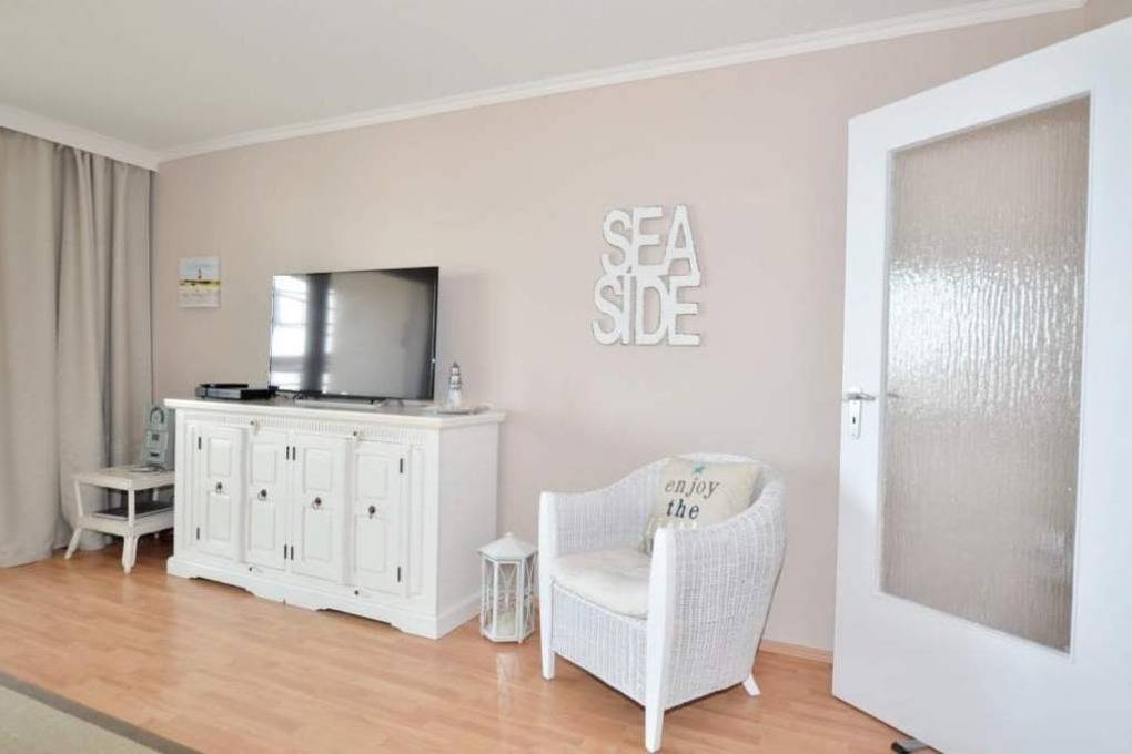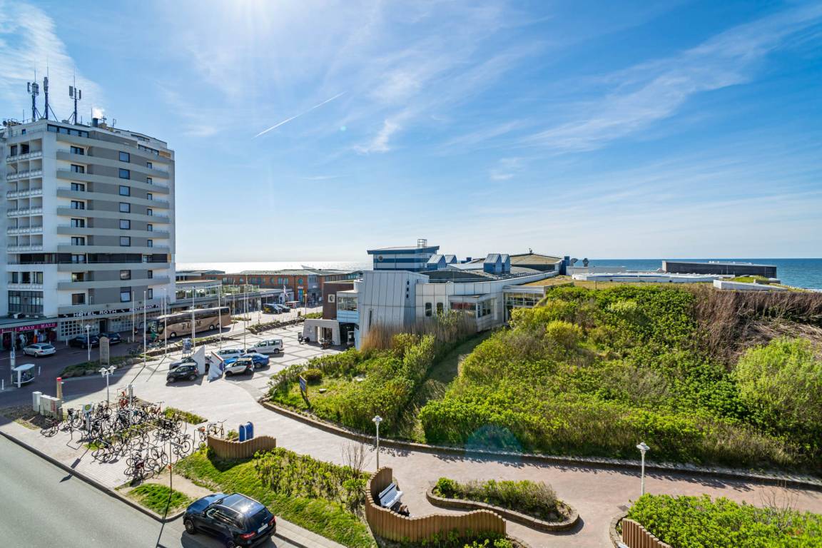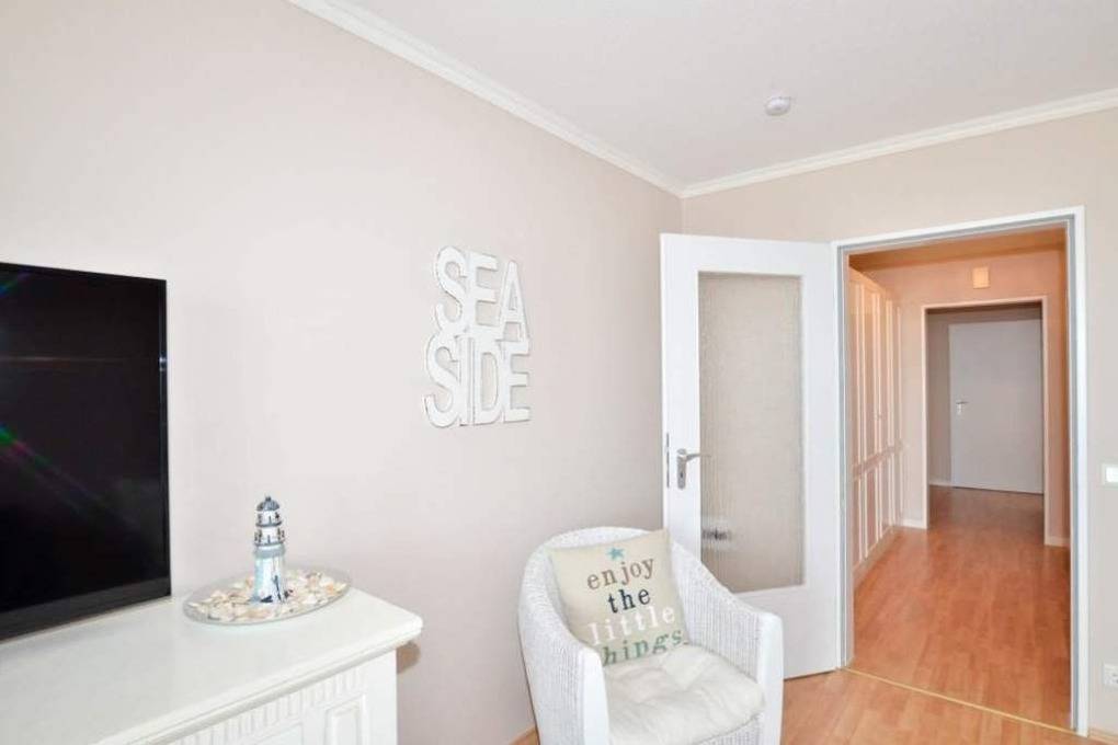 2-Zimmer-Nichtraucher-Ferienwohnung, ca. 54 m², in der 4. Etage zur Seeseite mit tollem Meerblick und sonniger Westloggia (Nachmittags- und Abendsonne, mit Balkonmöbeln und Auflagen) für max. 4 Personen.
