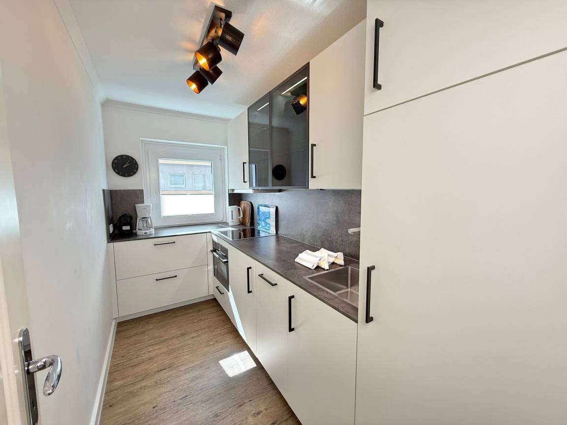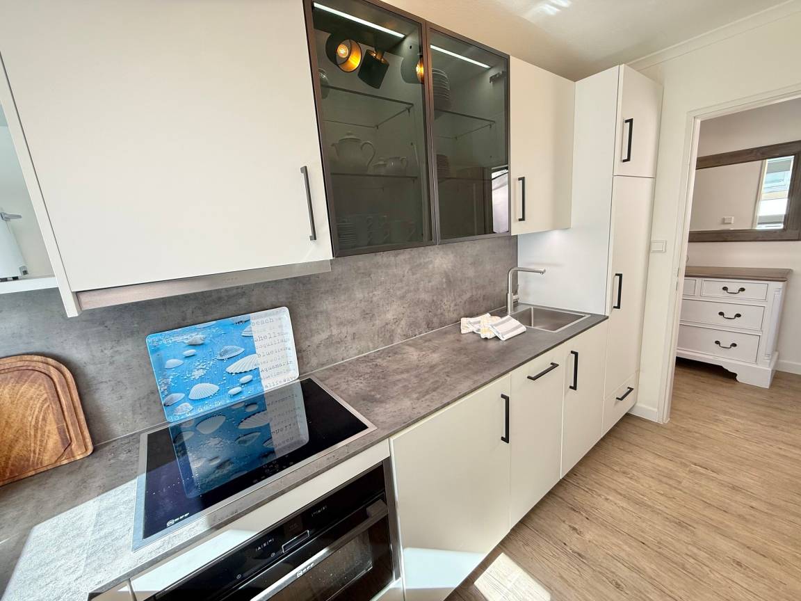 Die separate, vollausgestattete Küche hat einen Geschirrspüler, ein Ceranfeld (4 Kochfelder), einen Backofen, eine Nespresso-Maschine, einen Kühlschrank mit 3-Sterne-Gefrierfach und ein Fenster. Kaffeemaschine, Wasserkocher und Toaster gehören zur Grundausstattung.