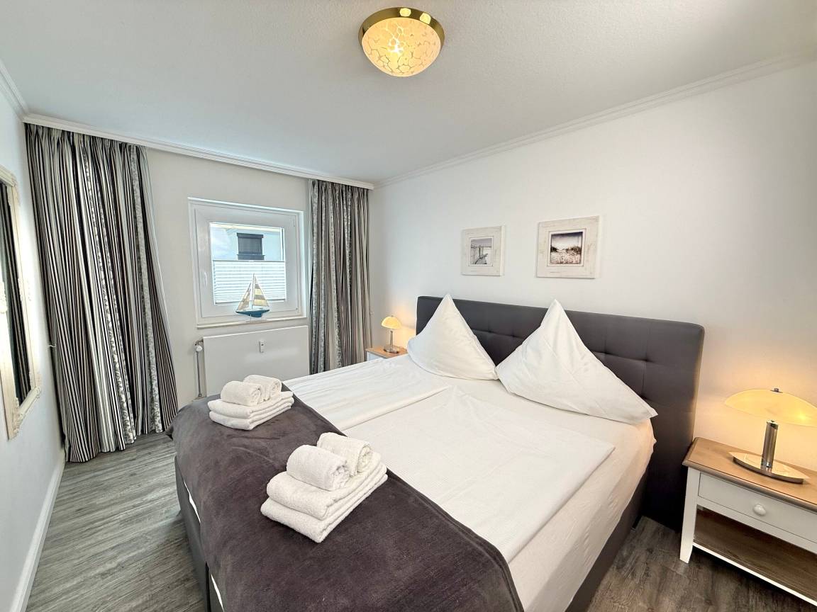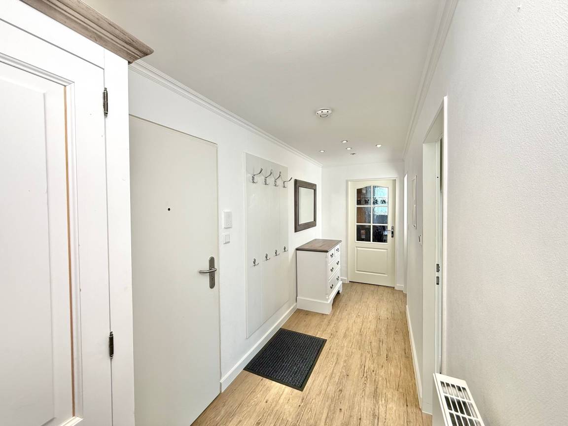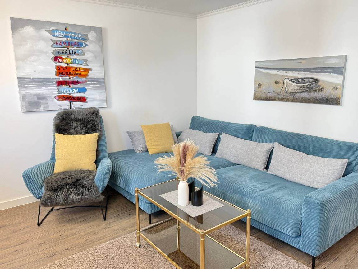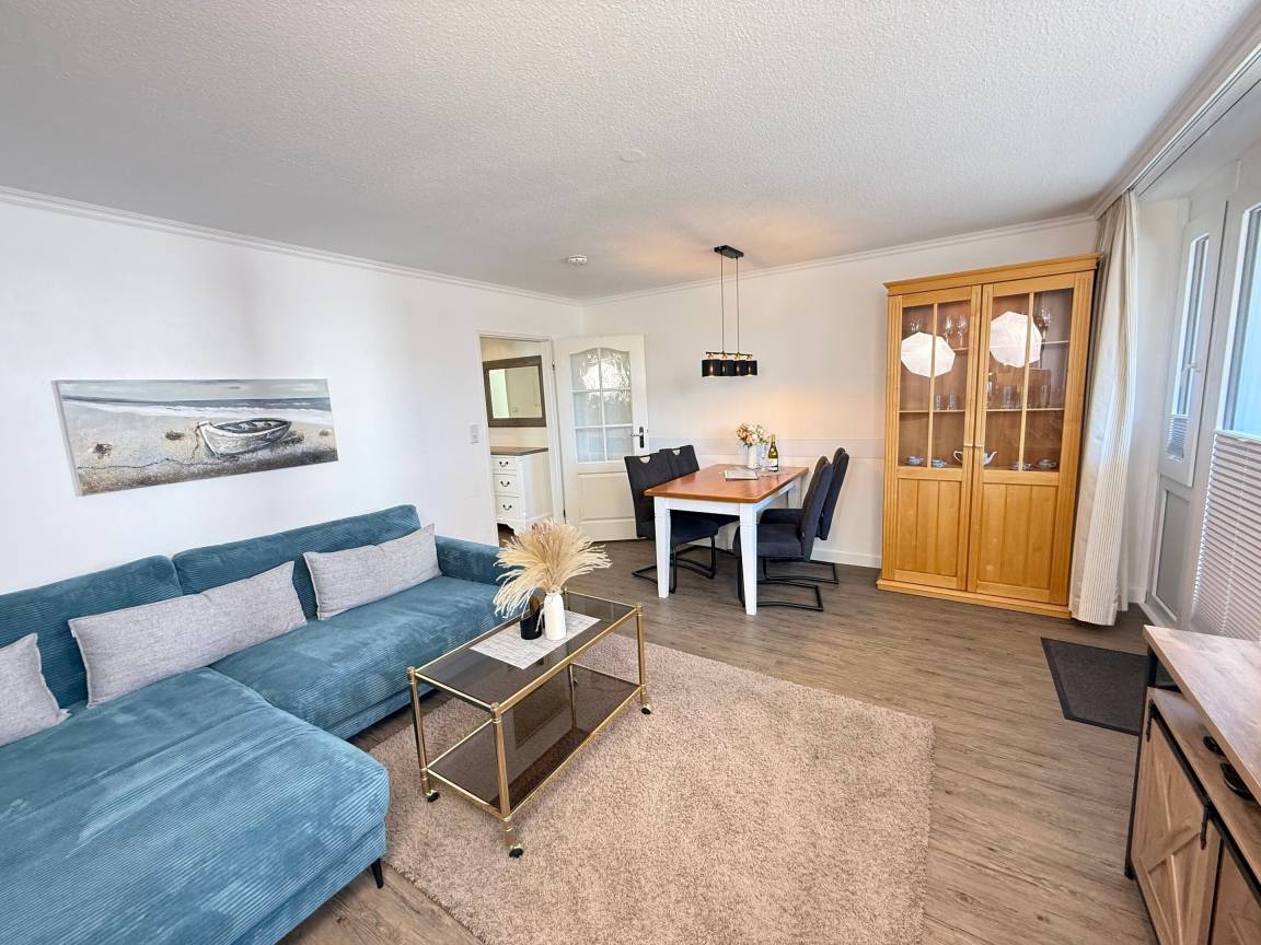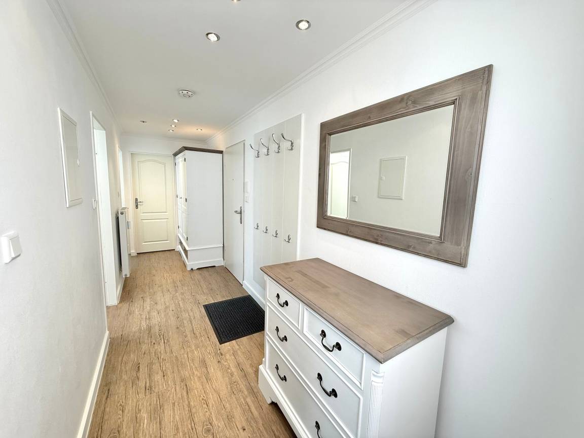 Schick renovierte 3-Zimmer-Nichtraucher-Ferienwohnung, ca. 63 qm, in der 2. Etage zur Landseite mit Ostloggia (Morgensonne, mit Balkonmöbeln und Auflagen) für max. 4 Personen (stufenfrei erreichbar).