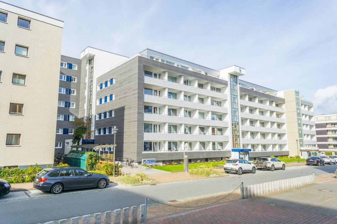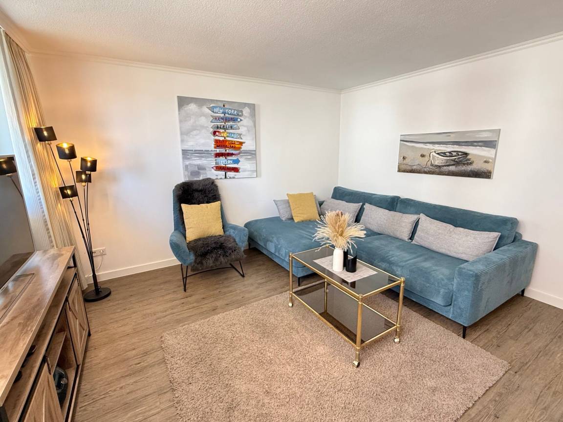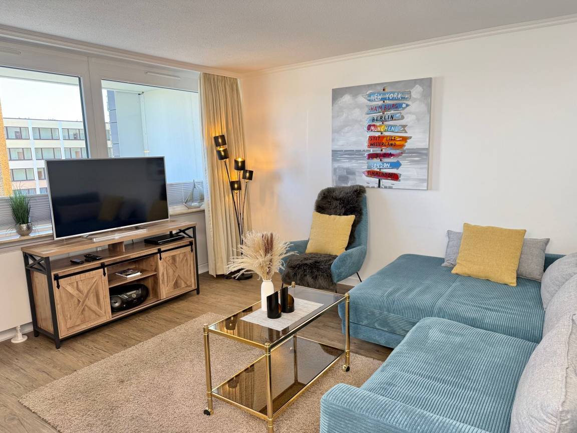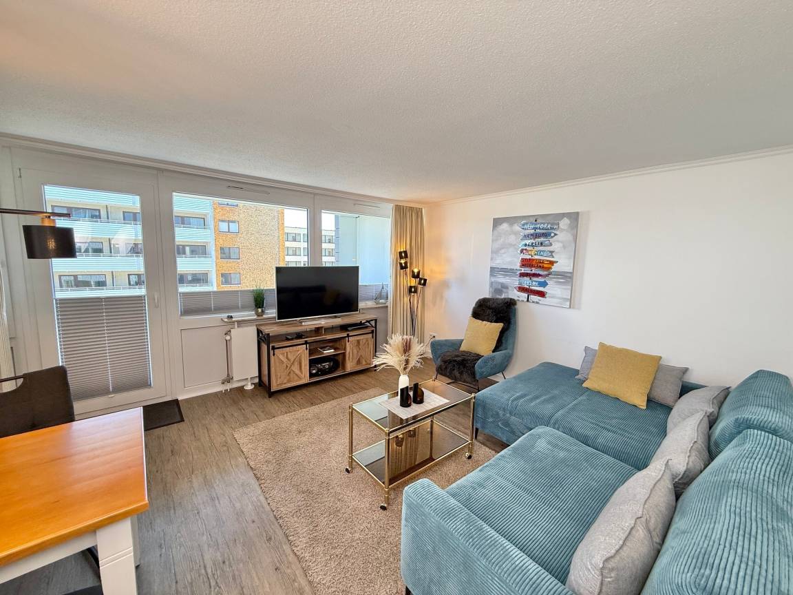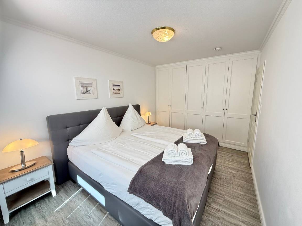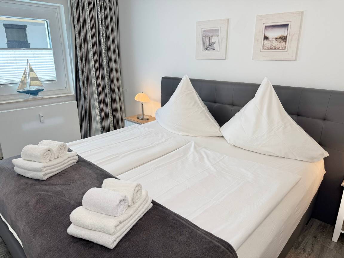 Schick renovierte 3-Zimmer-Nichtraucher-Ferienwohnung, ca. 63 qm, in der 2. Etage zur Landseite mit Ostloggia (Morgensonne, mit Balkonmöbeln und Auflagen) für max. 4 Personen (stufenfrei erreichbar).