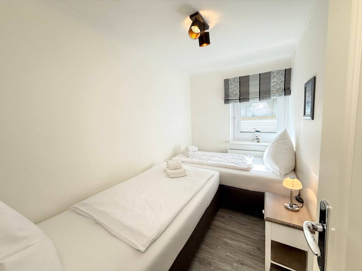 Das große Schlafzimmer ist mit einem bequemen Doppelbett (1,80 x 2,00 m) mit Einzelmatratzen und das kleine Schlafzimmer mit zwei über Eck stehenden komfortablen Einzelbetten ausgestattet.