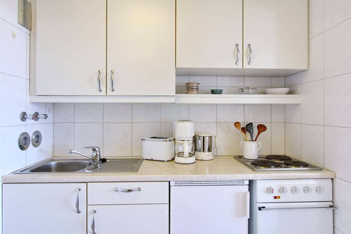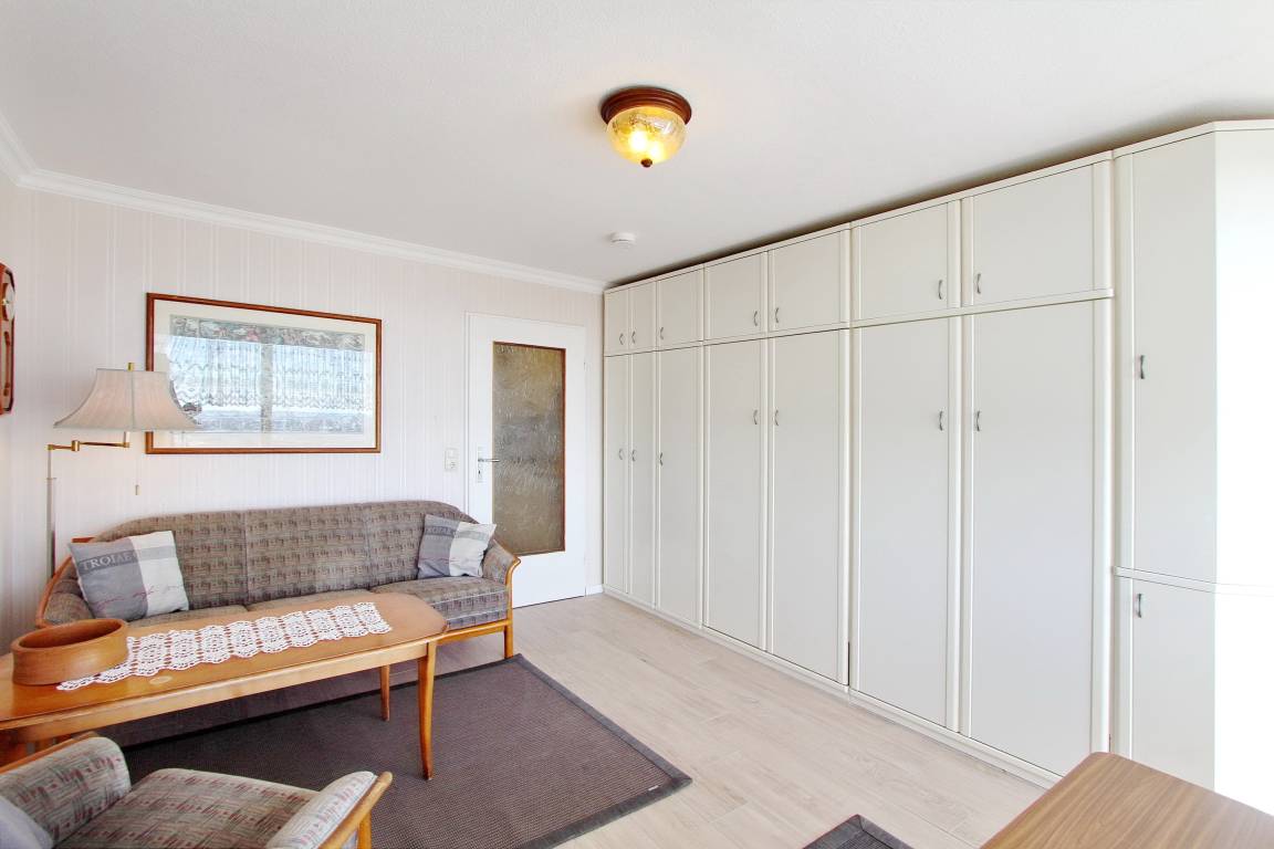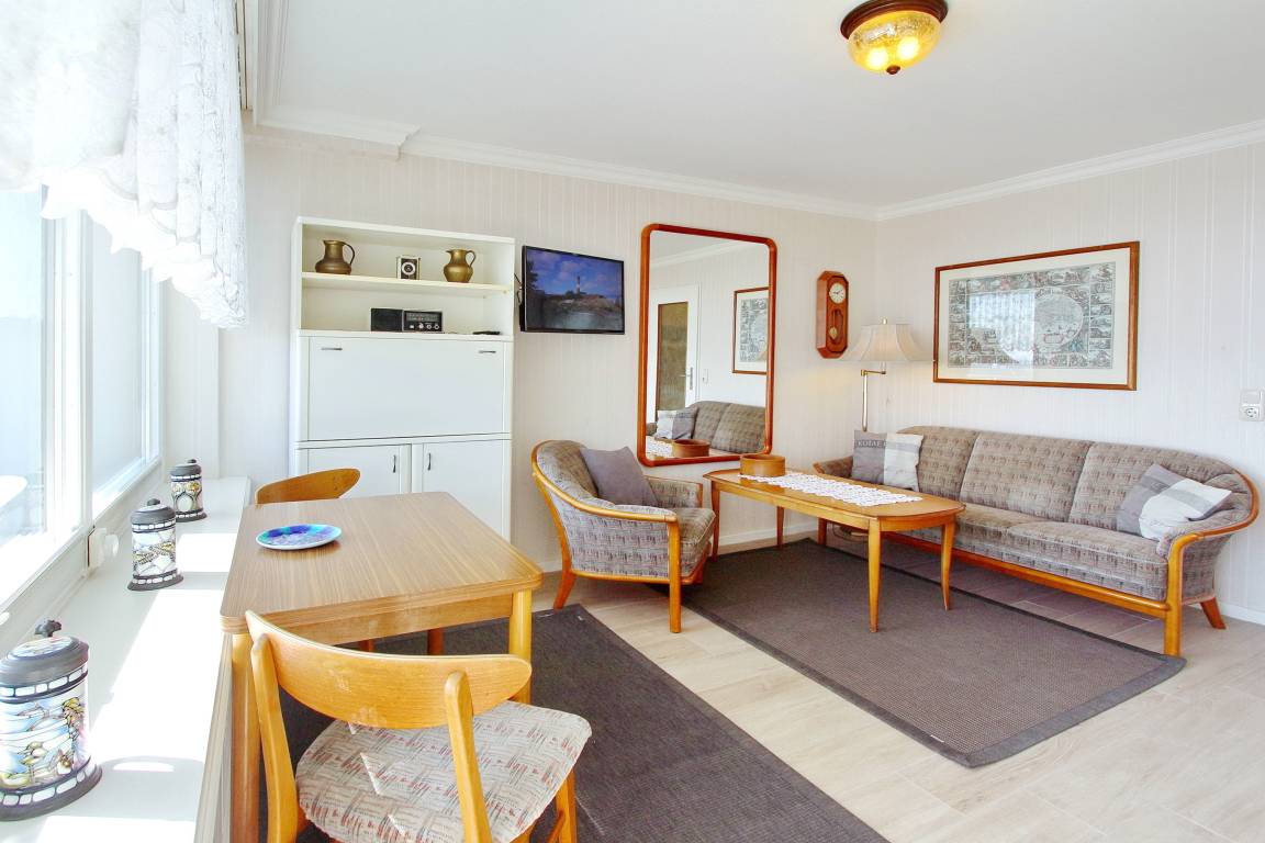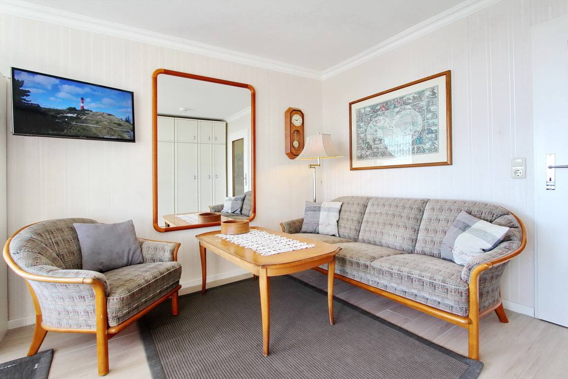 Einzimmerwohnung in der 7. Etage des Haus am Meer mit unmittelbarer Strand- und Innenstadtlage. Der kombinierte Wohn-/Schlafraum mit vorgelagertem Ostbalkon (Balkonmöbel und Auflagen sind vorhanden) ist eingerichtet mit Einzelschrankbetten, einem Essplatz am Fenster mit 2 Stühlen und einer Sitzgruppe mit Couch und Sessel. Das moderne, Badezimmer verfügt über eine Dusche mit flachem Einstieg. In der Küchenzeile im Flur mit Backofen und 3 Platten Herd können sie sich selbst verpflegen. Zur technischen Ausstattung gehört: ein Flachbildfernseher und ein Radio. Das passwortfreie Netzwerk (WEG Haus am Meer - Passwortfrei - ohne Gewähr) können sie kostenfrei nutzen. Wohnungsgröße: ca. 32 m².