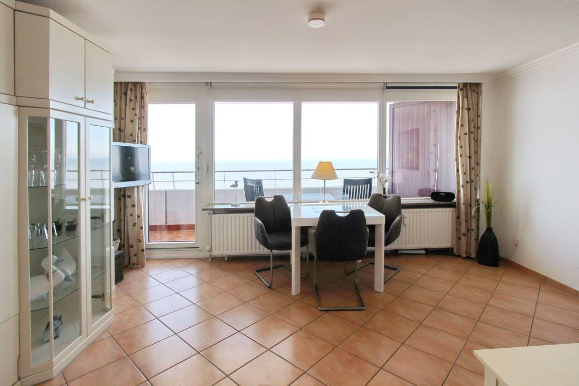 Schöne Einzimmerwohnung in der 7. Etage im Haus Metropol mit herrlichem Weitblick über den Strand und die Nordsee. Der kombinierte Wohn-/Schlafraum mit vorgelagertem, großen Westbalkon verfügt über einen Fliesenboden, ein Doppelschrankbett, einen Essplatz mit 3 Stühlen am Fenster und eine bequeme Eckcouch. In der separaten Küche mit Backofen, Geschirrspüler und zusätzlicher Senseo Kaffee Pad Maschine können sie sich selbst verpflegen. Im Badezimmer gibt es eine Dusche. Zur technischen Ausstattung gehört: ein Flachbildfernseher und ein Radio mit CD Player. Ein freier WLAN Hotspot (WEG Haus Metropol - Passwortfrei - ohne Gewähr) steht ihnen kostenfrei zur Verfügung. Wohnungsgröße: ca. 42 m². Nichtraucherwohnung.