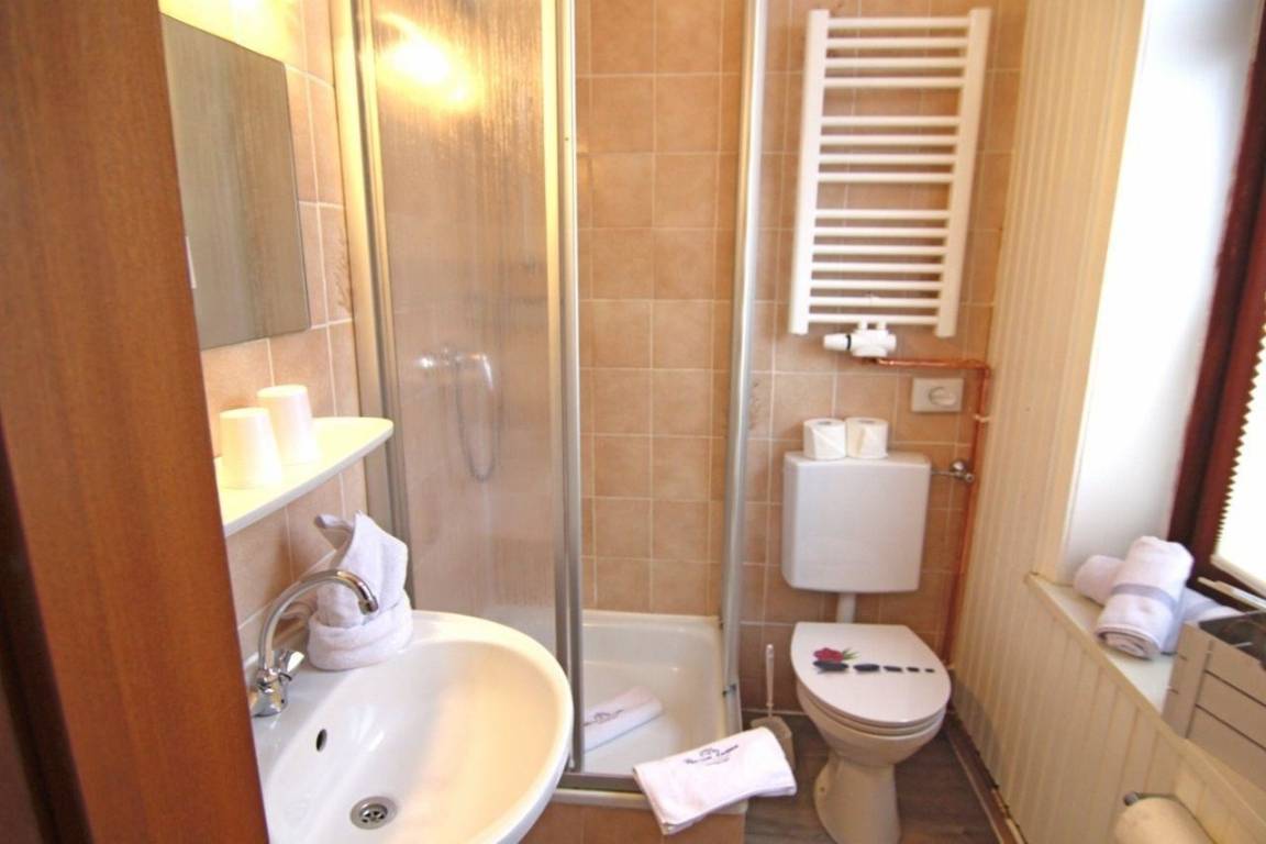 Eine Pantryküche ist im Zimmer für zwei Personen ausgerichtet. Das Duschbad verfügt über ein Fenster. Fön vorhanden.