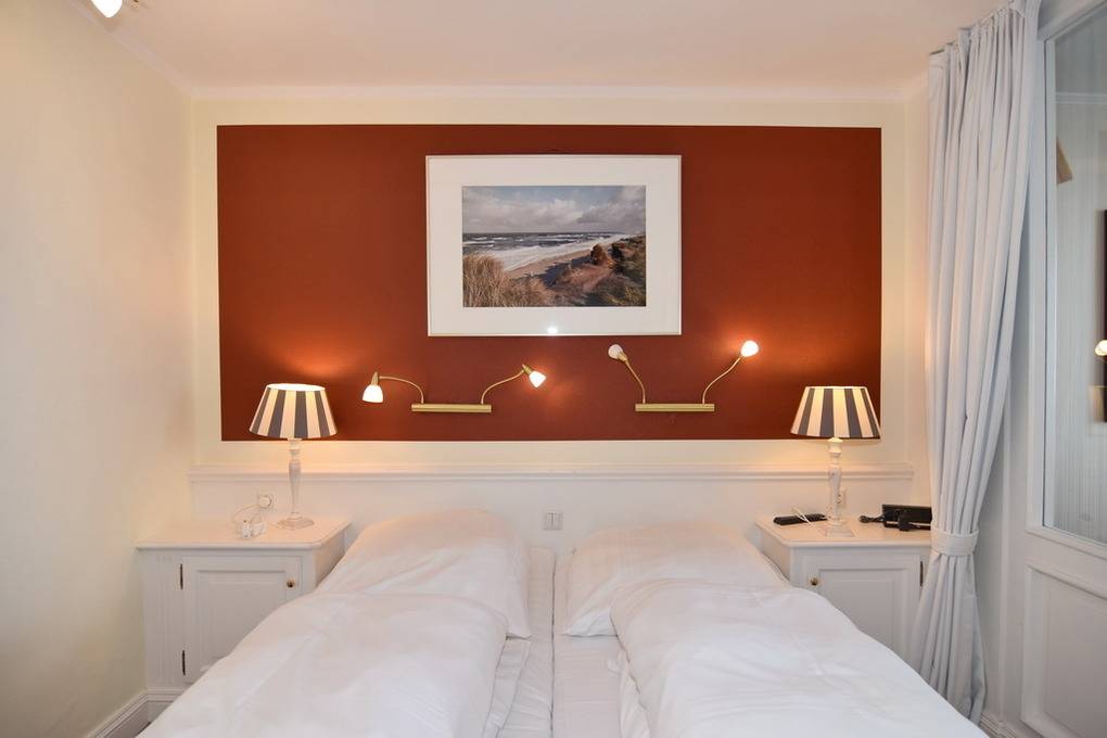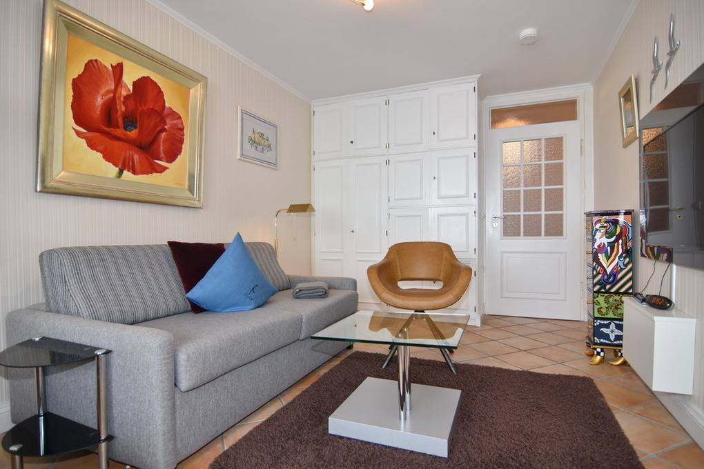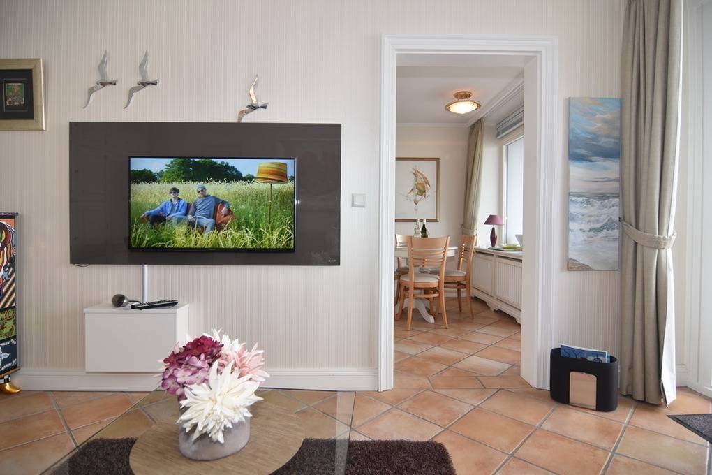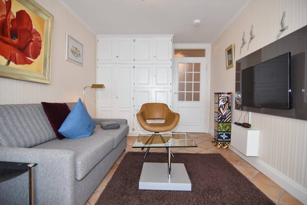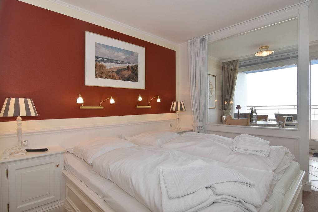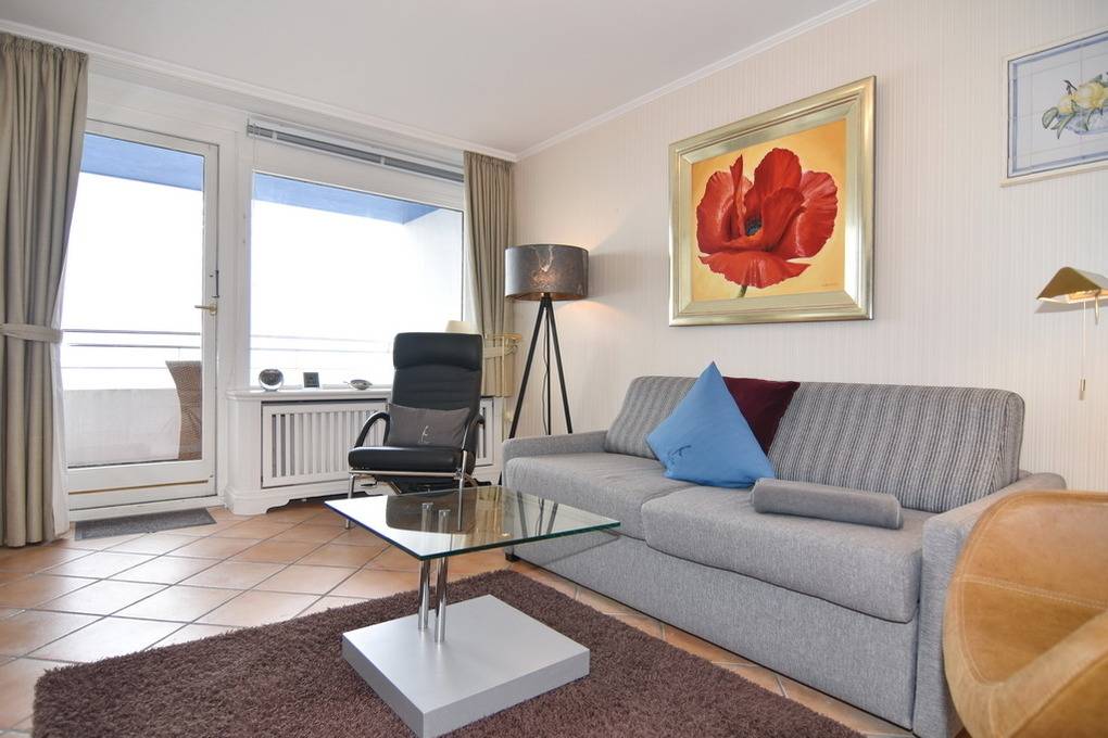 Exklusives 2-Zimmer-Apartment im Haus "Sylter Welle" zur Seeseite im 7. OG., ca. 50 m², Nichtraucher. Wohnzimmer mit Schlafcouch (140x200) und 2 Sessel, Einbauschrank, TV, Radio, W-LAN ohne Gewähr, Westbalkon mit Meeresblick, Schlafzimmer mit Doppelbett (2x80x200) und TV, abgetrennt ein Esstisch am Fenster mit Meeresblick und Westbalkon, Duschbad/ WC, offene Küche im Flur mit Mikrowelle und Geschirrspüler, Die Wohnung ist außer dem Schlafzimmer gefliest. Tierhaltung ist nicht gestattet. PKW-Stellplatz/Garage kann kostenpflichtig gebucht werden. Bettwäsche und Handtücher sind zur Anreise aufgezogen.