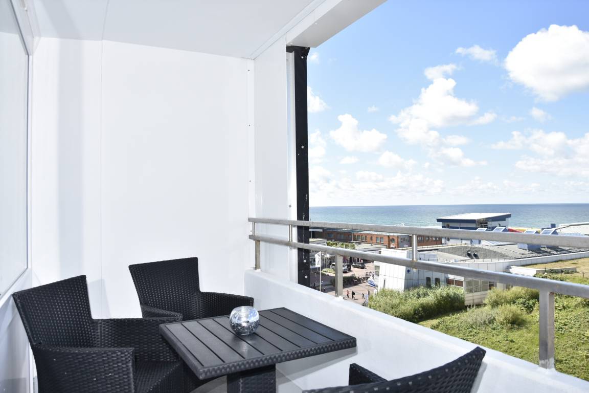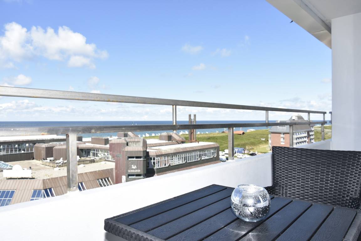 Komfortable 2-Zimmer-Nichtraucher-Ferienwohnung (ca. 51 qm) in der 6. Etage zur Seeseite mit herrlichem Meerblick für max. 4 Personen mit Westloggia (Nachmittagssonne, Balkonmöbel vorhanden).