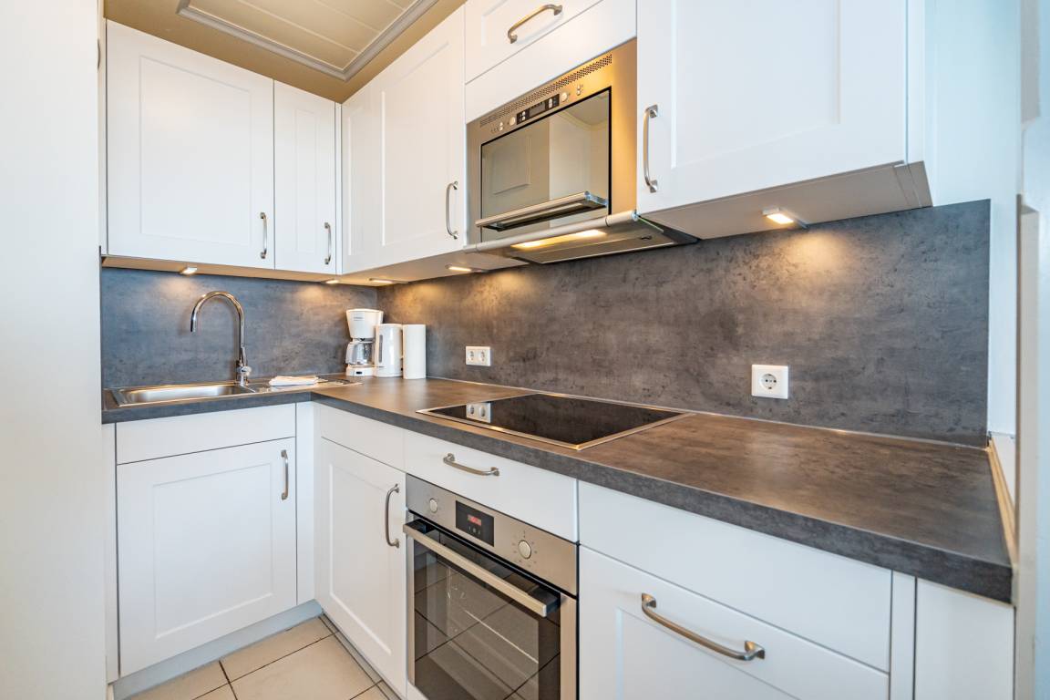 Die Küche hat einen Geschirrspüler, eine Nespresso-Maschine, ein 4-Platten-Induktionskochfeld mit Backofen und einen Kühlschrank mit 3-Sterne-Gefrierfach.