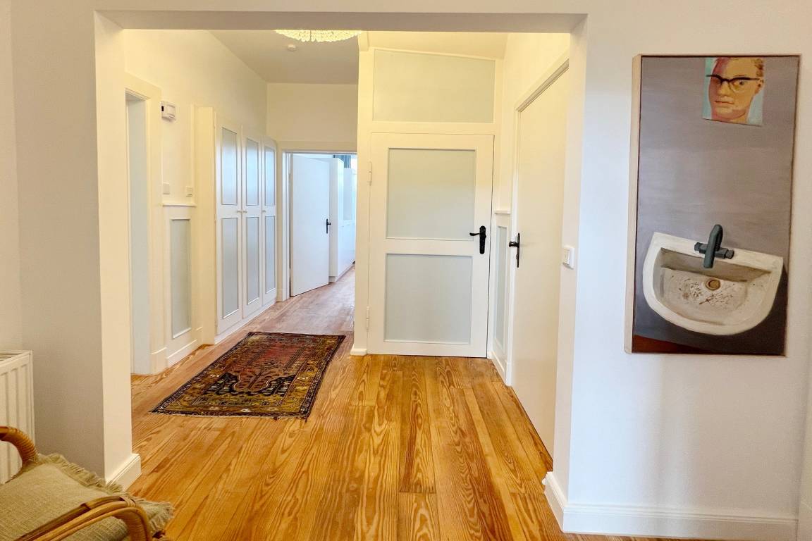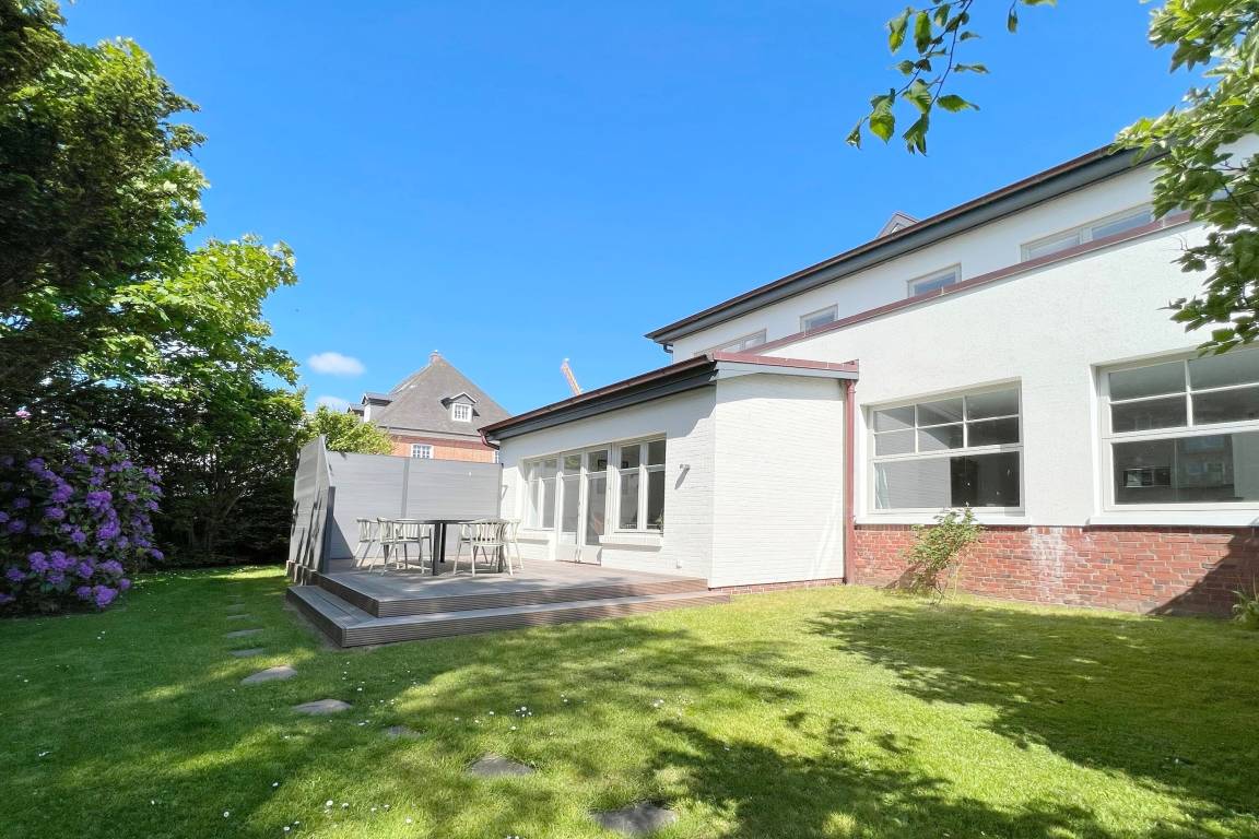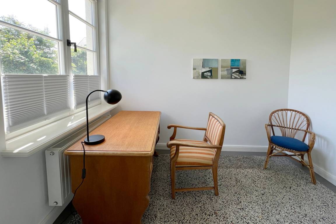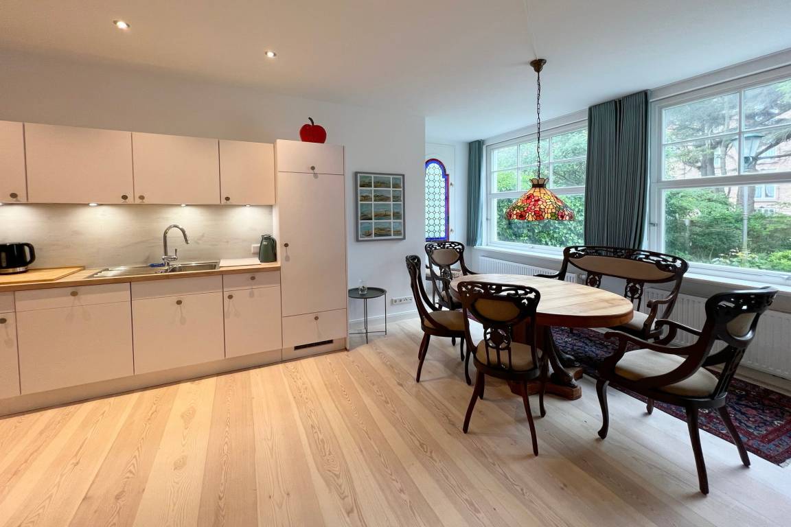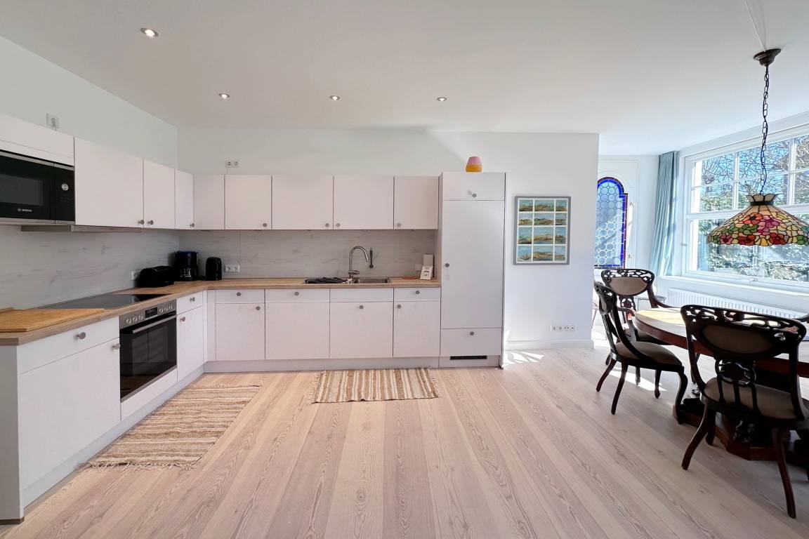 Die Ferienwohnung befindet sich in zentraler und strandnaher Lage und wurde frisch renoviert und saniert. Sie verfügt über einen großzügigen Grundriss von ca. 100 m² und alle Räume befinden sich auf einer Ebene. Im Wohnbereich gibt es eine integrierte Küche und einen Zugang zur Terrasse und dem allein zu nutzenden Garten. Ebenfalls zur Wohnung gehört ein Arbeitszimmer mit Schreibtisch und Blick in den grünen Garten. Auf dem Grundstück gibt es einen PKW-Stellplatz. Die Ferienwohnung verfügt über zwei Schlafzimmer mit jeweils einem Doppelbett und ein modernes Badezimmer mit Dusche und Wanne. Im Haus gibt es eine Waschmaschine und einen Trockner, die gemeinschaftlich mit App. 2 genutzt werden können.