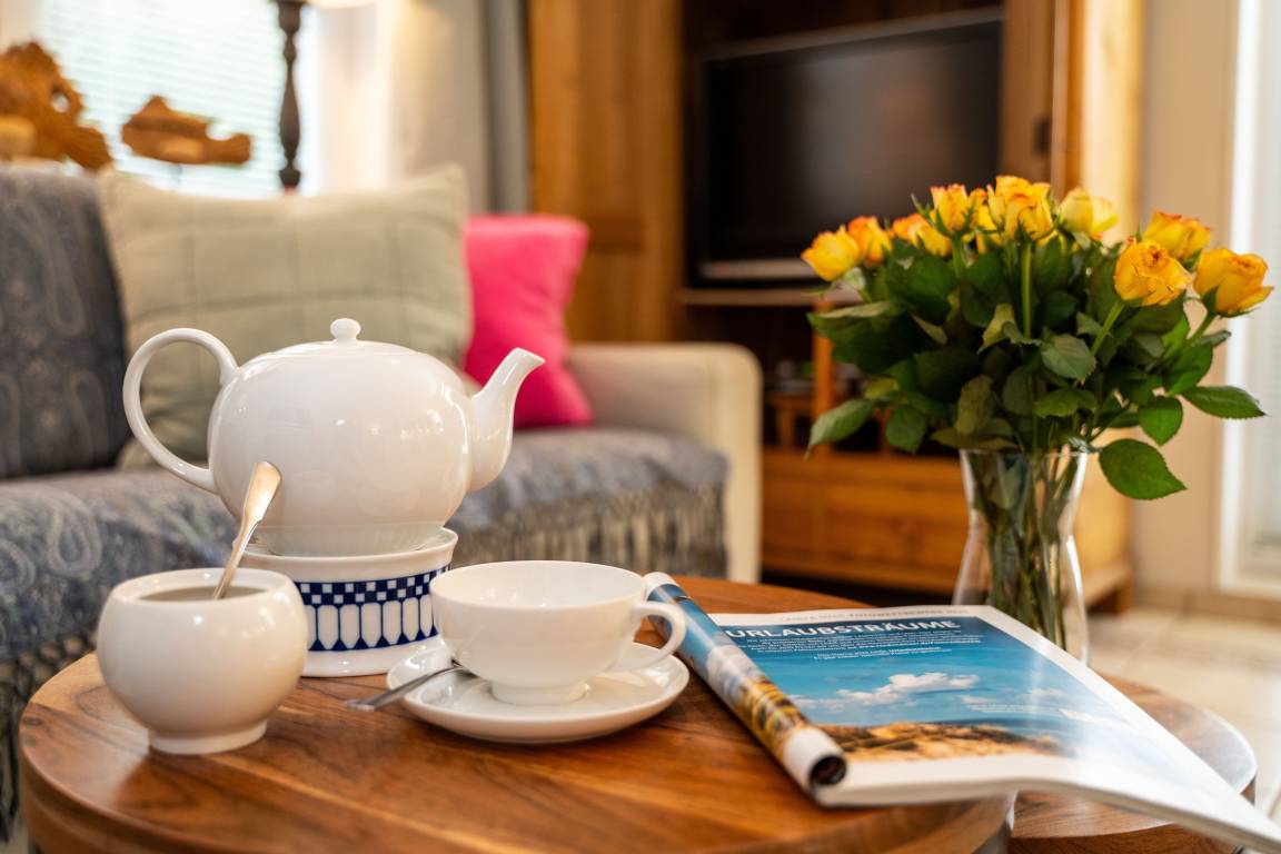 Ein besonderes Highlight ist der Außenbereich: Ihnen stehen ein eigener Strandkorb und bequeme Gartenmöbel zur Verfügung – perfekt für ein Frühstück an der frischen Nordseeluft, eine sonnige Auszeit zwischendurch oder einen entspannten Tagesausklang. So genießen Sie die ruhige Atmosphäre von Morsum ganz in Ihrem eigenen Tempo.