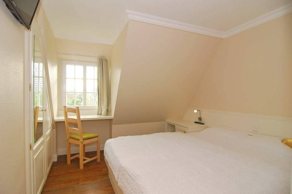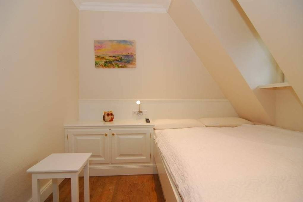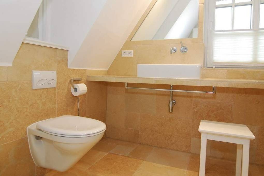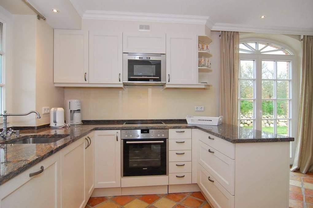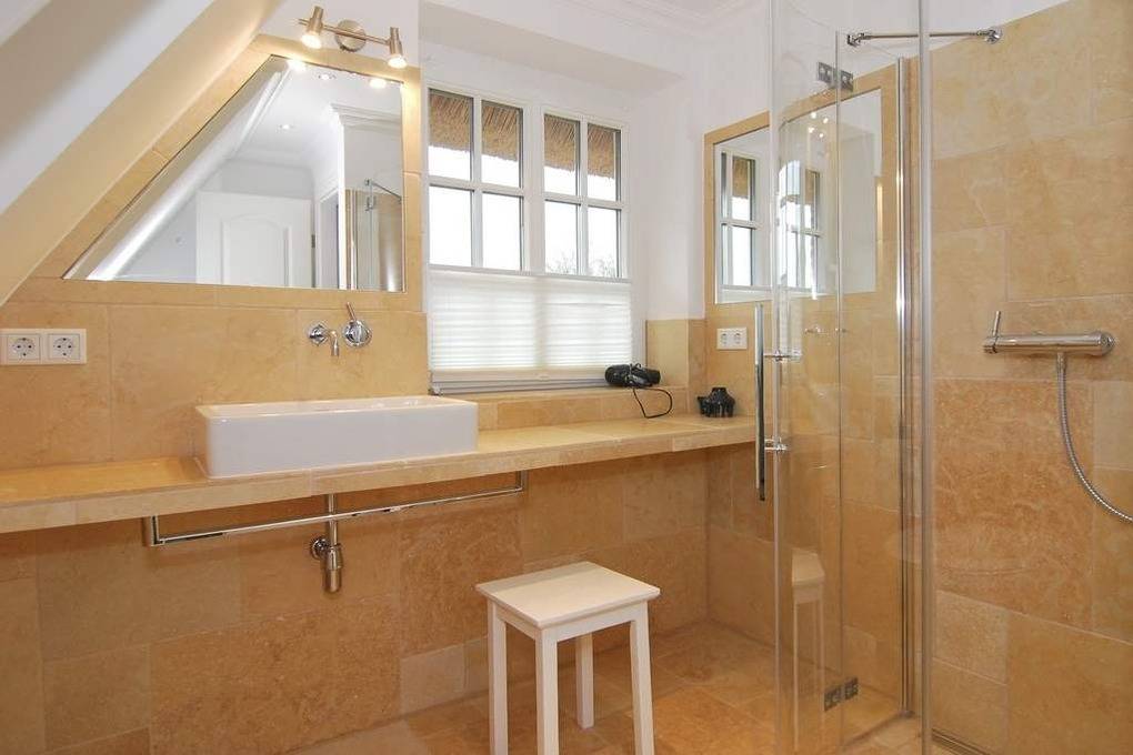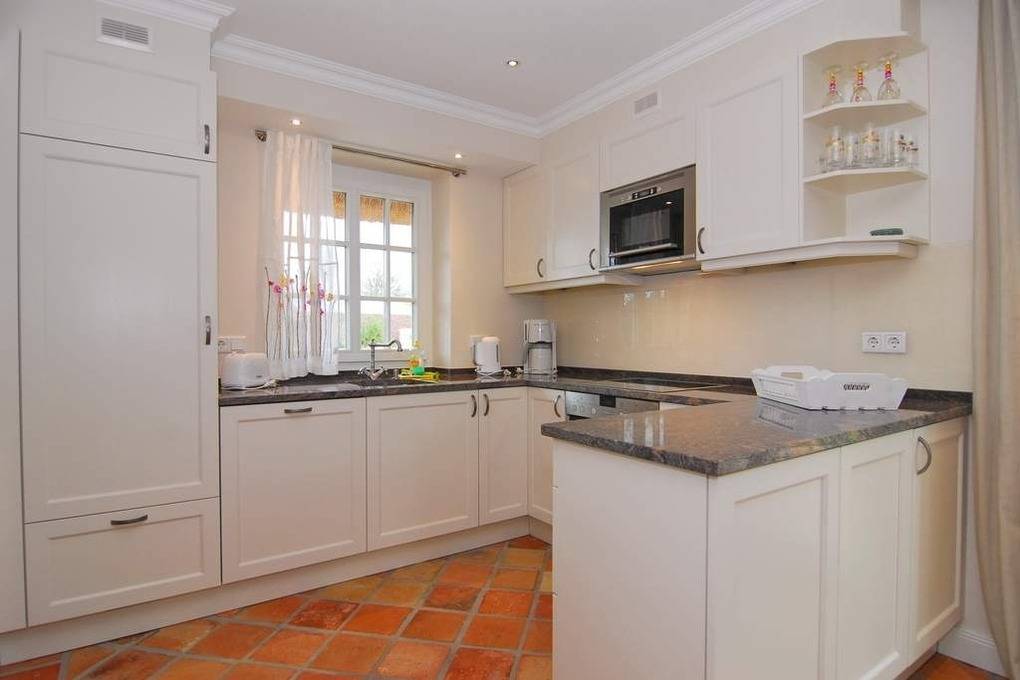 Schönes Ferienhaus / Doppelhaushälfte unter Reet auf sonnigem Südgrundstück. Ca. 113m². EG: gefliestes Wohn- und Esszimmer mit moderner Marken-Einbauküche (GS, Mikrowelle, etc.), schöner Essplatz am Fenster, Couchecke mit Doppelcouch, 2 Sesseln und Hocker, Kamin, WLan, Flat-Screen, Stereoanlage mit CD, Gäste-WC, HW-Raum mit WA/TR, Garderobe. OG: 1 Schlafzimmer mit Doppelbett, Flat-Screen und eigenem Duschbad/WC, 1 weiteres Schlafzimmer mit Doppelbett und Flatscreen sowie 1 Schlafzimmer mit 1,20x2m und Flat-Screen, 1 Vollbad/WC. Zusätzlicher Schrank-/Abstellraum im DG. Große Süd- und Ostterrasse mit Gartenmöbeln. Nichtraucher-Haus! Grillen verboten! Bettwäsche und Handtücher sind zur Anreise aufgezogen. Tierhaltung ist erlaubt, muss bitte angemeldet werden!