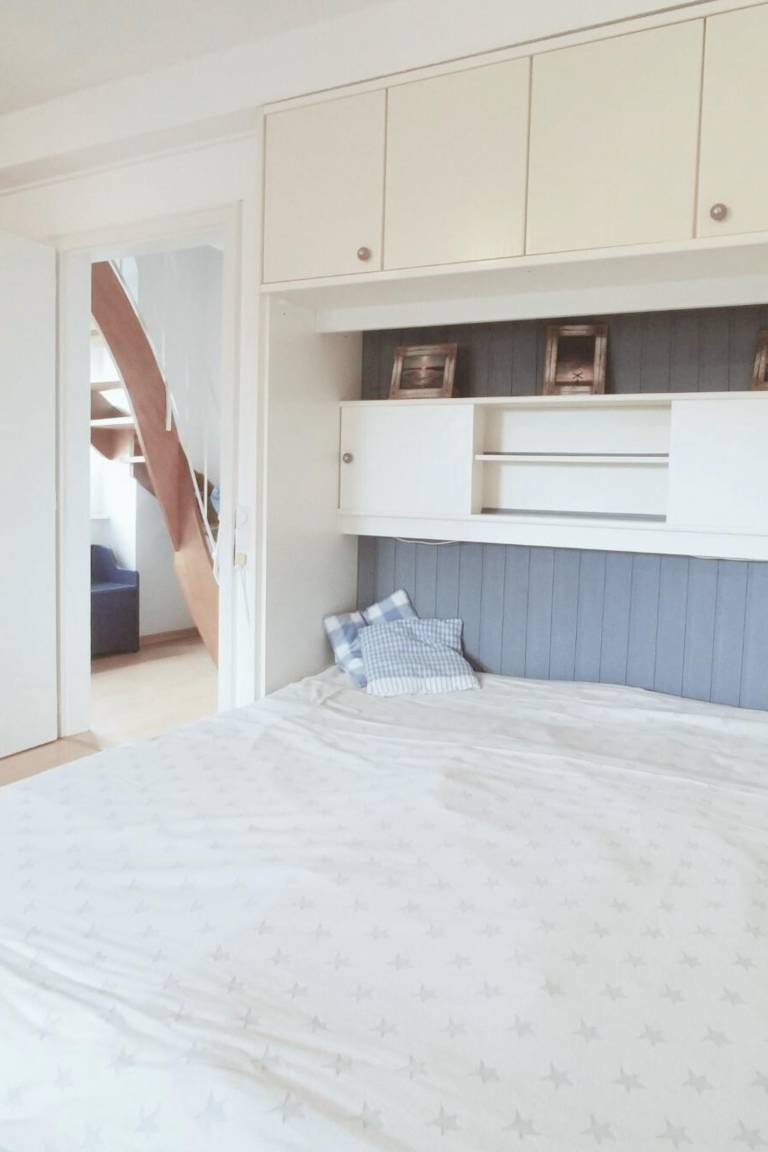Im Dachgeschoss liegt ein weiteres Schlafzimmer mit Doppelbett, Schrank, Sessel und TV.