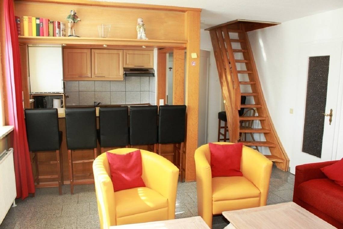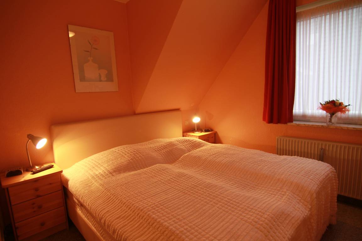 Zu den zwei Erdgeschoßwohnungen gehören eine Terrasse, ein Strandkorb, Gartenmöbel und ein PKW Stellplatz. Die zwei Wohnungen im Obergeschoß haben zusätzlich einen im ausgebauten Dachgeschoß befindlichen 2. Schlafraum mit 2 Einzelbetten und sep. Fernseher.