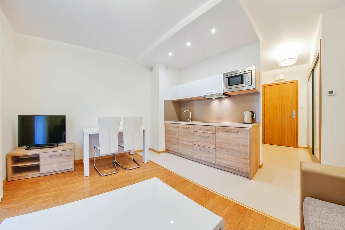 Zu den gewählten Apartments darf man mit dem Hund ankommen. Die zusätzlichen Kosten des Aufenthalts mit einem vierbeinigen Freund betragen 100 zł (Einzelgebühr). Die Gäste, die den Aufenthalt mit dem Hund planen, bitten wir um eine frühere Kontaktaufnahme mit unserem Service im lokalen Büro (im „KONTAKT" auf unserer WWW-Seite finden Sie unsere Telefonnummer).
