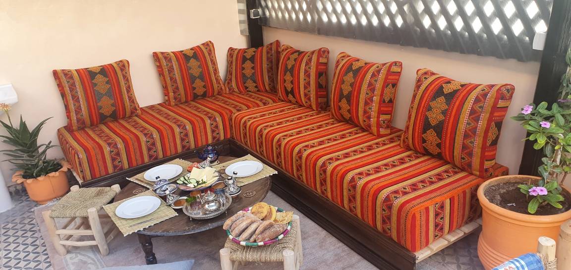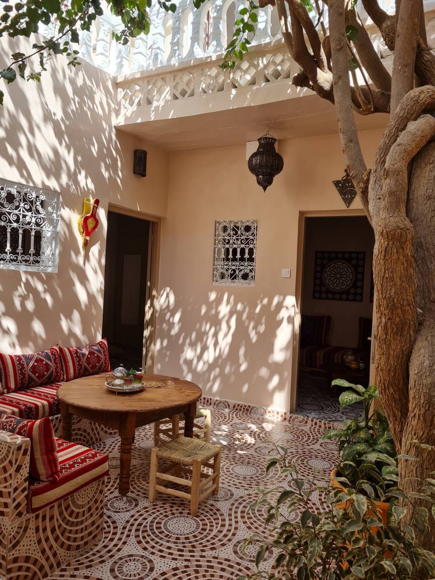 Unser Haus ist ein Riad mit einem schönen Innenhof und einer herrlichen Terrasse mit Grill.