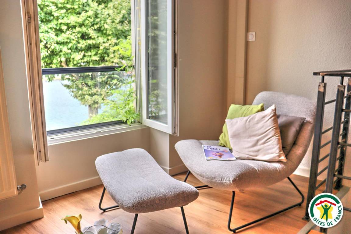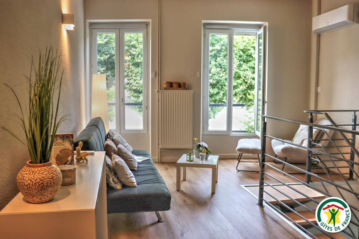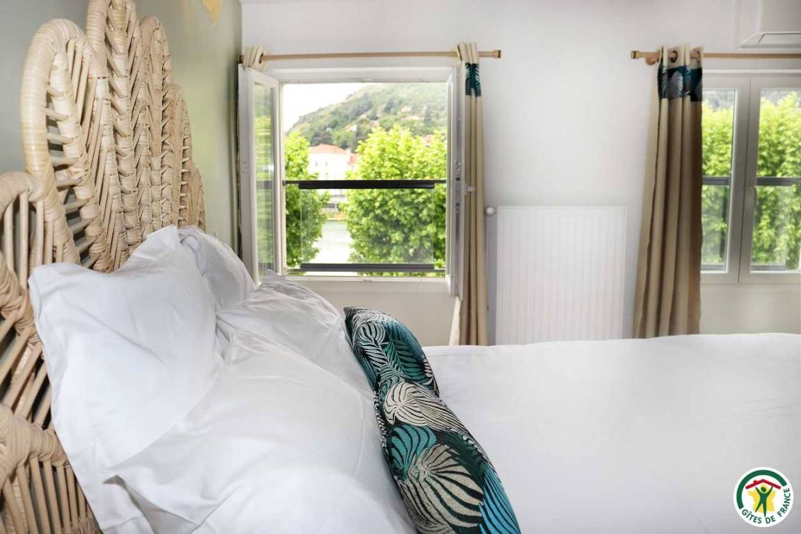 „Un gîte spacieux et confortable, qui outre les deux chambres et les deux salles de bain possède plusieurs espaces de séjour différents: Un espace séjour/télé, un espace lecture, un bureau, et une terrasse couverte donnant sur la rue. Il possède un garage. Le quartier est calme, et le quai n'est pas trop bruyant. La situation est idéale, en plein centre de Tain, et à proximité immédiate de Tournon, à pied, via la passerelle Marc Seguin. On peut passer un séjour entier sans utiliser de véhicule. Mais surtout, la magnifique vue de Tournon et du Rhône, depuis le gîte, constitue un plaisir renouvelé à toute heure de la journée.“