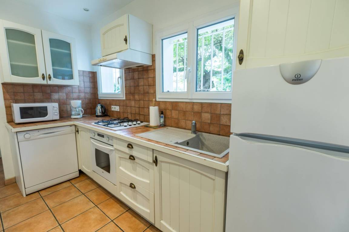 Das einstöckige Ferienhaus verfügt über eine Einbauküche mit Mikrowelle, Geschirrspüler und Gefrierschrank.