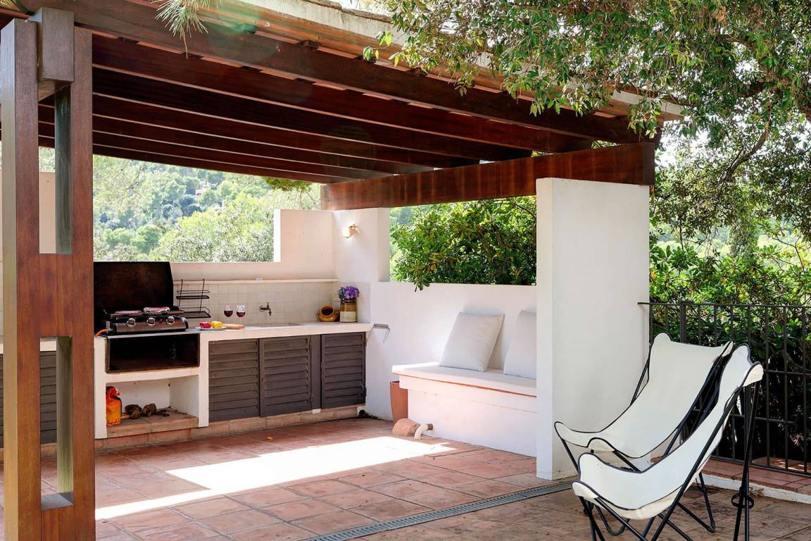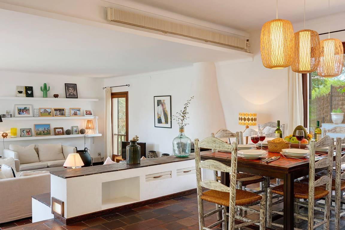 Die Küche verfügt über einen Geschirrspüler und eine Mikrowelle. Die Heizung und Klimaanlage ermöglichen eine ganzjährige Temperaturregelung; eine Waschmaschine steht zur Verfügung. Ein Fernseher mit Satellitenempfang ist vorhanden. Die Villa verfügt über einen privaten Pool, eine private Terrasse, einen privaten Garten mit Pinienbestand und einen Grill.