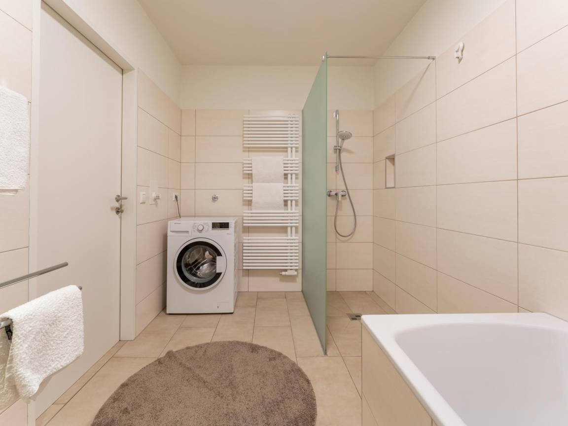 1x Garage(Gemeinschaftliche Nutzung mit anderen Gästen, 2 Parkplätze), Waschmaschine, Terrasse(überdacht, 16 m²), Garten, Gartenmöbel, BBQ(elektrisch), Aufzug, 2x Kinderbett (ohne Bettwäsche), 2x Hochstuhl