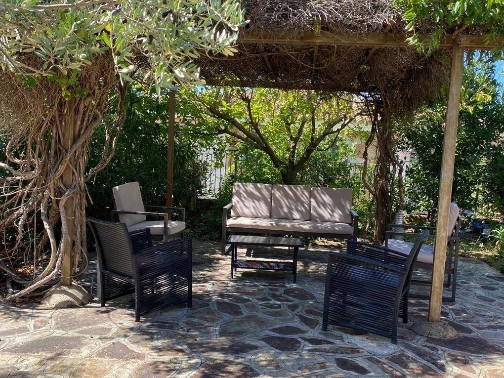 Die Villa verfügt über einen schönen Garten, in dem Sie essen oder sich sonnen können. Es gibt auch zwei Duschen.