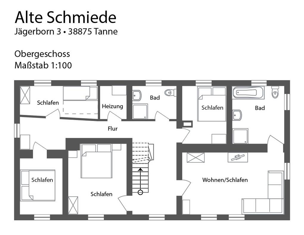 Lage: Der Ort Tanne liegt 500 m über dem Meeresspiegel, ist von viel Wald umgeben und ca. 15 km vom Brocken entfernt. Das größte Skigebiet im Harz Braunlage/Wurmberg kann man nach 9 km erreichen. Langlaufmöglichkeiten sind ab dem Haus oder in Schierke (12 km) möglich. Die bekannten Orte Goslar, Wernigerode, Quedlinburg, Thale sind nur wenige Autominuten entfernt Eine Eisdiele gibt es im Ort. Direkt am Haus entspringt eine Quelle (Jägerborn), die in die Bode fließt.