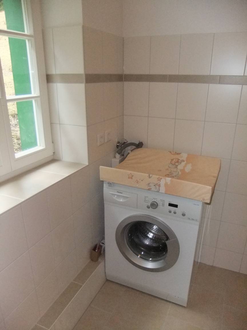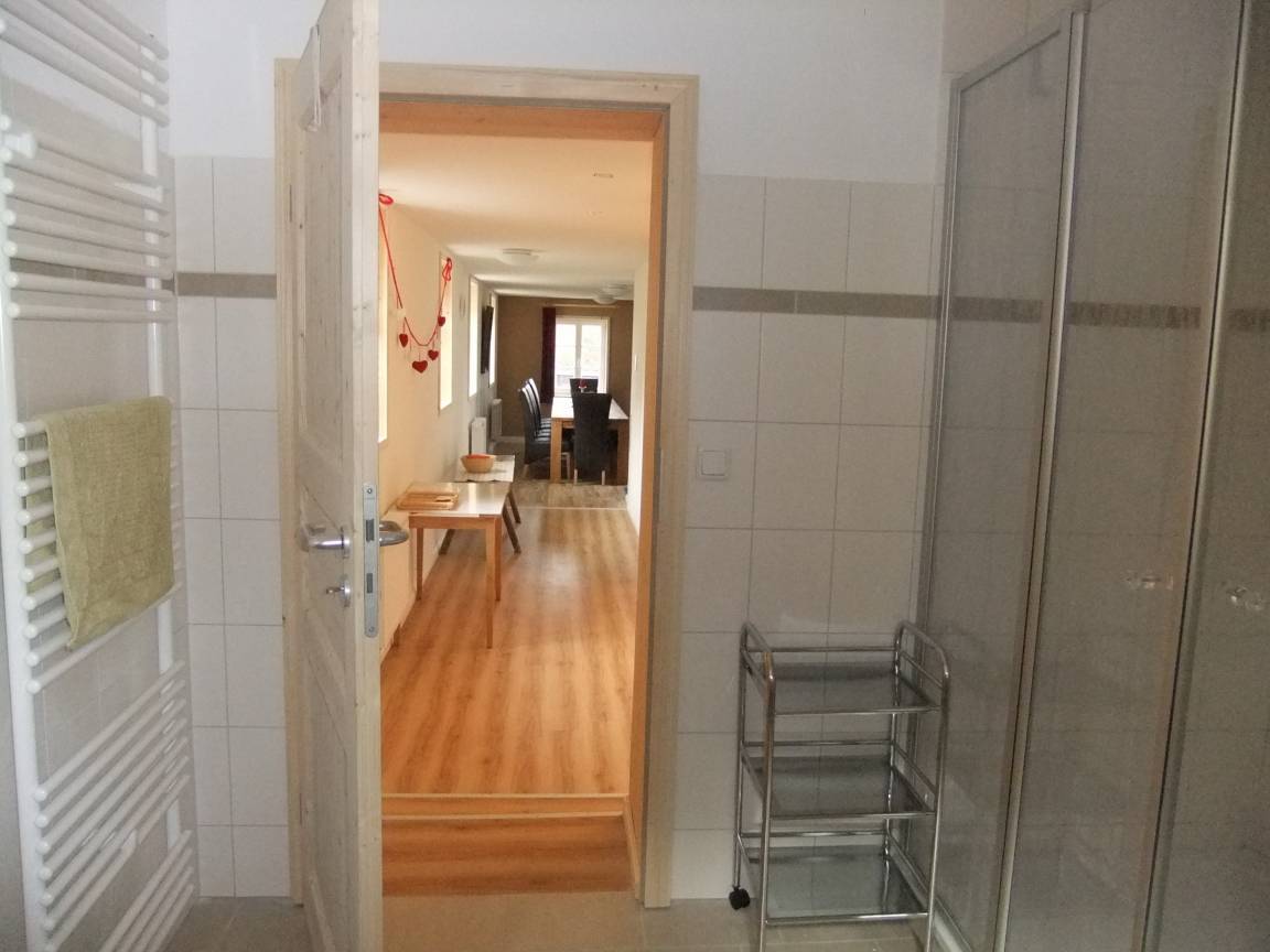 Im Flur befindet sich das WC. Auf der linken Seite sind 2 Schlafzimmer (2x2-ideal für eine Familie geeignet. Außerdem ist im Bad 1 eine DU, Waschmaschine, Waschbecken vorhanden.