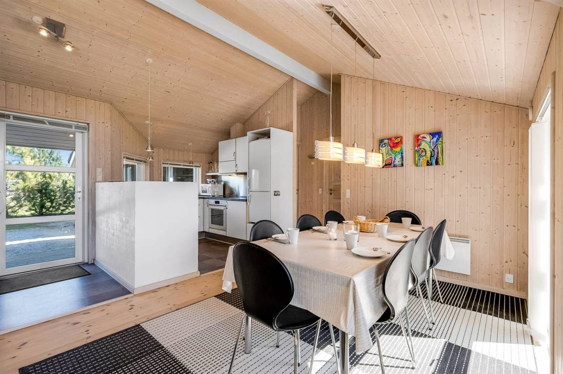 DraußenDie Ferienunterkunft liegt auf einem 1241 m² großen Naturgrundstück. Die Entfernung zum Meer beträgt 13500 m. Die Entfernung zum Fjord beträgt 600 m. Die nächste Einkaufsmöglichkeit liegt 500 m entfernt. Es steht ein 150 m² Terrassenareal zur Verfügung. Außerdem gibt es 30 m² überdachte Terrasse. Schaukel. Sandkasten. Es steht ein Carport zur Verfügung. Parkplatz auf dem Grundstück.