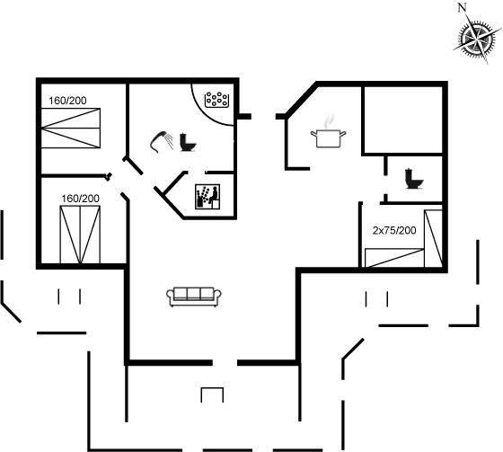 MultimedienIn der Ferienunterkunft gibt es einen Fernseher. Stereoanlage. CD-Player. Mindestens 4 dänische Fernsehsender. Mindestens 4 deutsche Fernsehsender. Es steht kabellose Internetverbindung zur Verfügung.