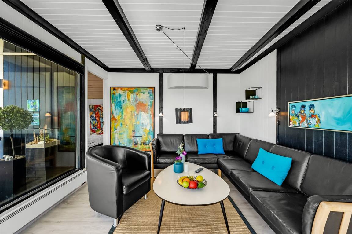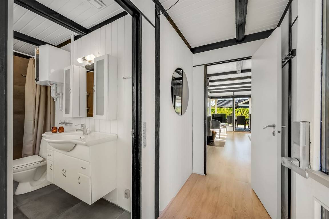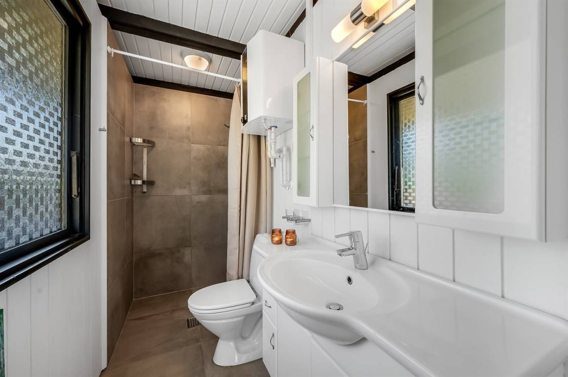 DraußenDie Ferienunterkunft liegt auf einem 1100 m² großen Naturgrundstück. Die Entfernung zum Meer beträgt 12500 m. Die Entfernung zum Fjord beträgt 350 m. Die nächste Einkaufsmöglichkeit liegt 1000 m entfernt. Es steht ein 110 m² Terrassenareal zur Verfügung. Außerdem gibt es 10 m² überdachte Terrasse. Geräteraum. Schaukel. Parkplatz auf dem Grundstück.