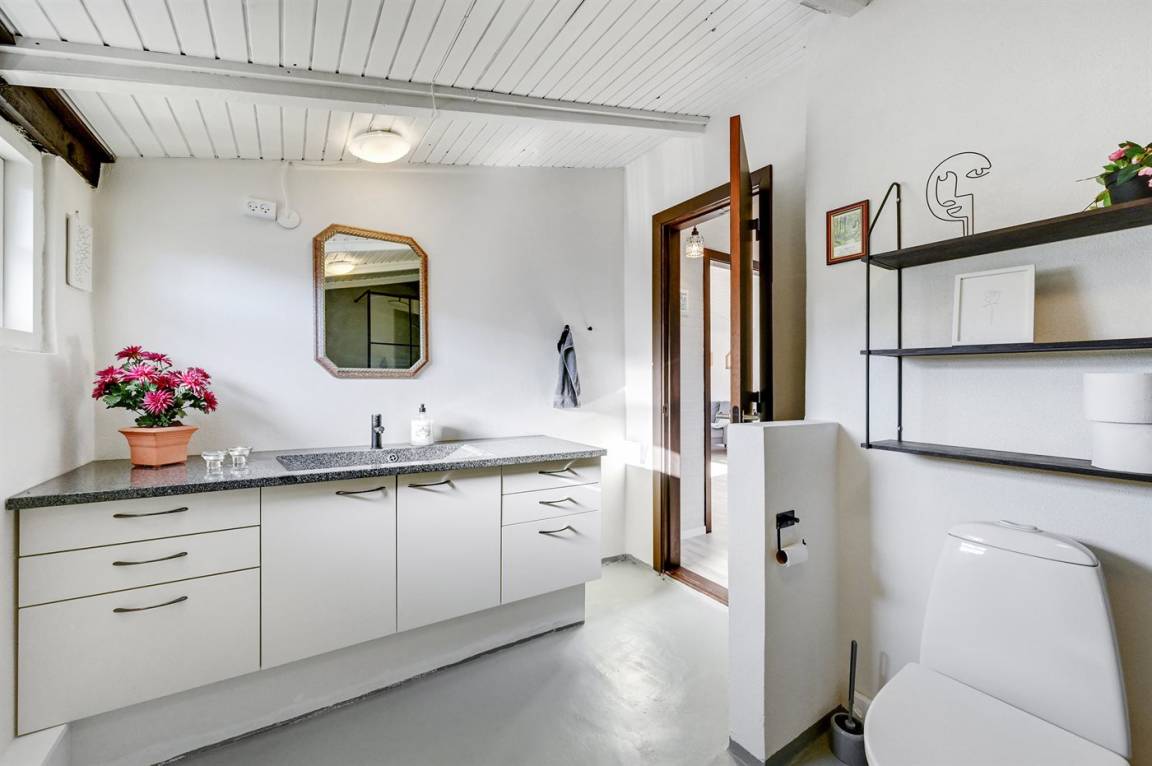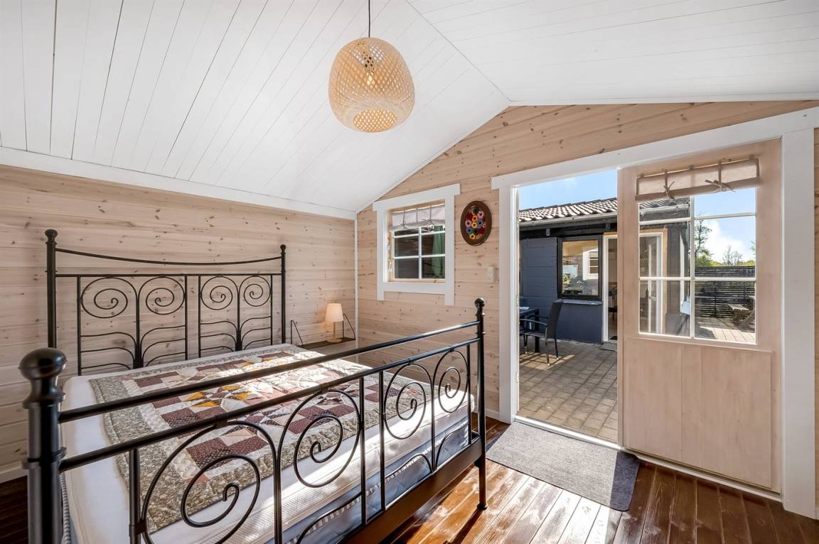 DraußenDie Ferienunterkunft liegt auf einem 1200 m² großen Naturgrundstück. Die Entfernung zum Meer beträgt 13000 m. Die Entfernung zum Fjord beträgt 350 m. Die nächste Einkaufsmöglichkeit liegt 650 m entfernt. Es steht ein offenes Terrassenareal zur Verfügung. Trampolin. Die Entfernung zu einem Spielplatz beträgt 500 m. Außendusche. Parkplatz auf dem Grundstück.