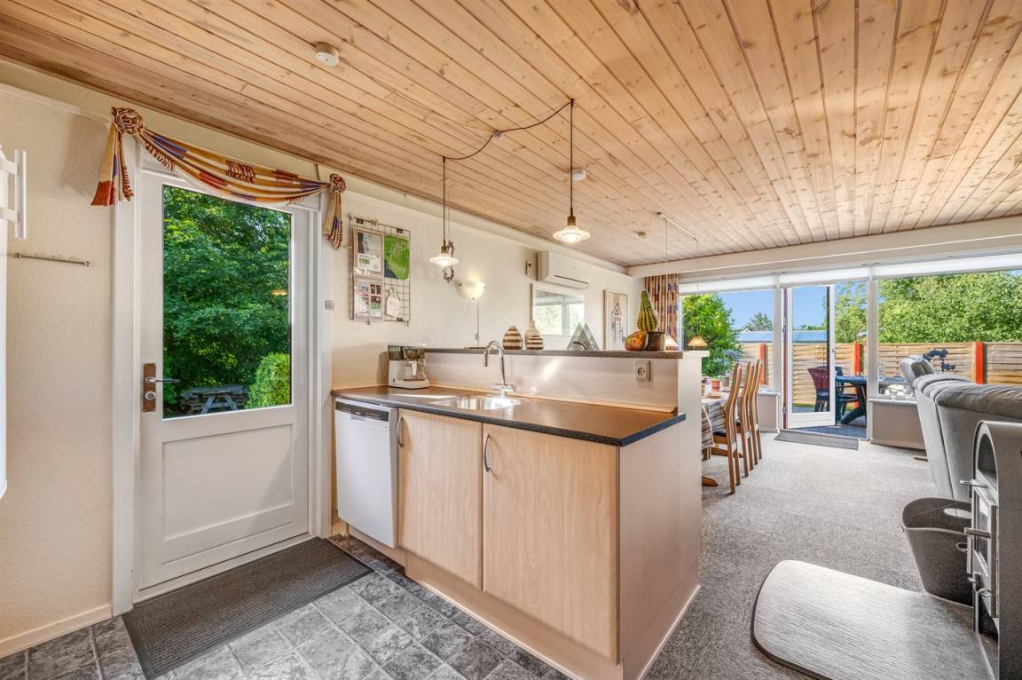 DraußenDie Ferienunterkunft liegt auf einem 1600 m² großen Naturgrundstück. Die Entfernung zum Meer beträgt 15000 m. Die Entfernung zum Fjord beträgt 150 m. Die nächste Einkaufsmöglichkeit liegt 850 m entfernt. Es steht ein offenes Terrassenareal zur Verfügung. Geräteraum. Es steht ein Grill zur Verfügung. Parkplatz auf dem Grundstück.