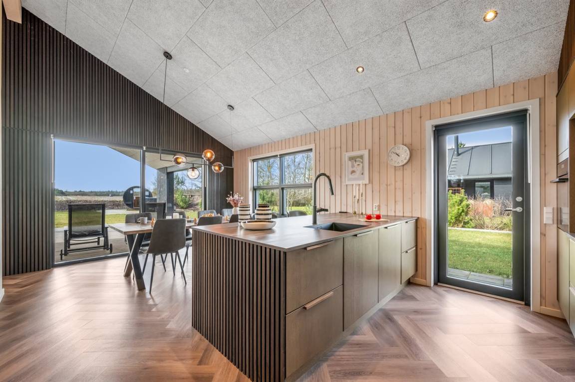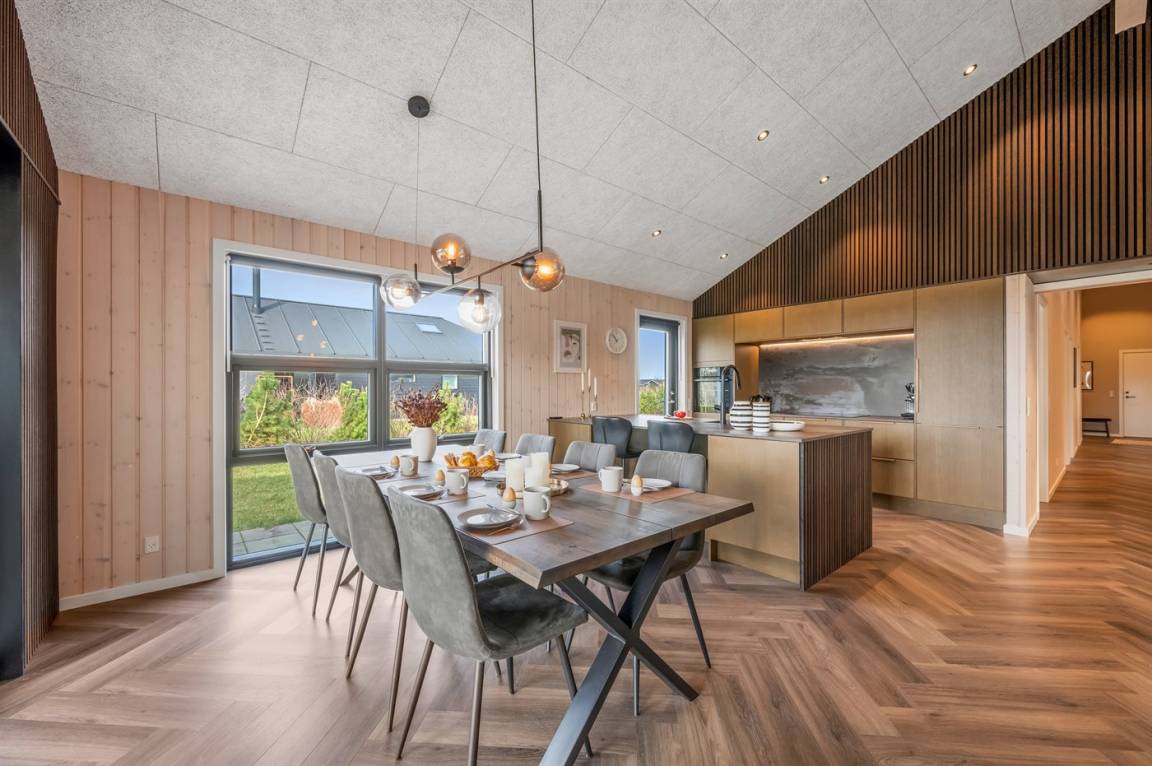 DraußenDie Ferienunterkunft liegt auf einem 1500 m² großen Gartengrundstück. Die Entfernung zum Fjord beträgt 900 m. Die nächste Einkaufsmöglichkeit liegt 600 m entfernt. Es steht ein offenes Terrassenareal zur Verfügung. Außerdem gibt es überdachte Terrasse. Außensauna. Es steht ein Grill zur Verfügung.Es steht eine Garage zur Verfügung. Es ist ein Ladestecker für Elektroautos installiert. Ladestecker Typ 2. Mit einer Ladeleistung von 11 kW. Parkplatz auf dem Grundstück.