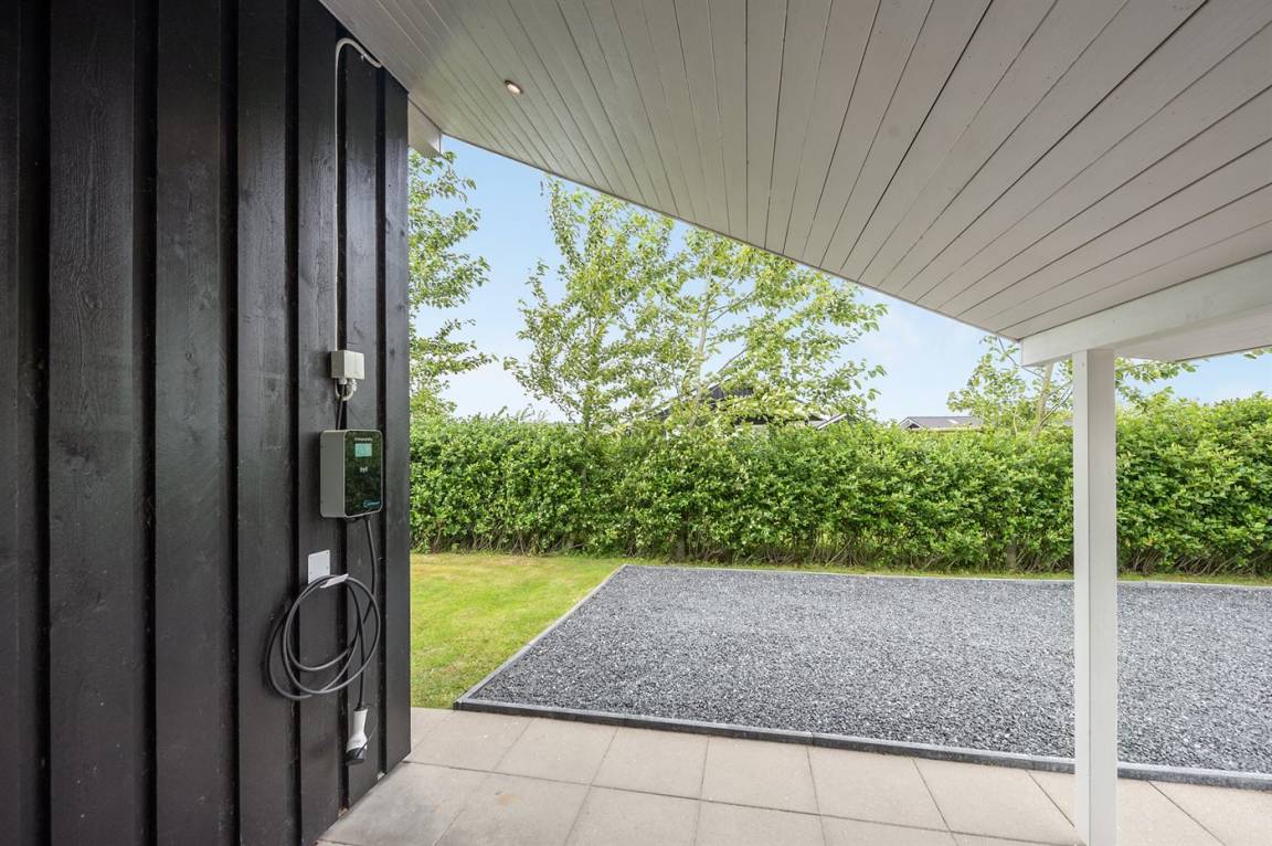 DraußenDie Ferienunterkunft liegt auf einem 1330 m² großen Gartengrundstück. Die Entfernung zum Meer beträgt 11000 m. Die Entfernung zum Fjord beträgt 700 m. Die nächste Einkaufsmöglichkeit liegt 600 m entfernt. Es steht ein 50 m² Terrassenareal zur Verfügung. Außerdem gibt es 20 m² überdachte Terrasse. Geräteraum. Schaukel. Sandkasten. Windschutzhütte. Es ist ein Ladestecker für Elektroautos installiert. Ladestecker Typ 2. Mit einer Ladeleistung von 9 kW. Parkplatz auf dem Grundstück.