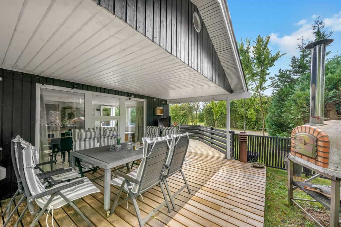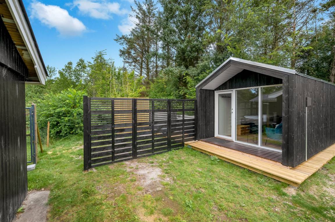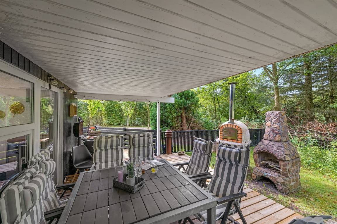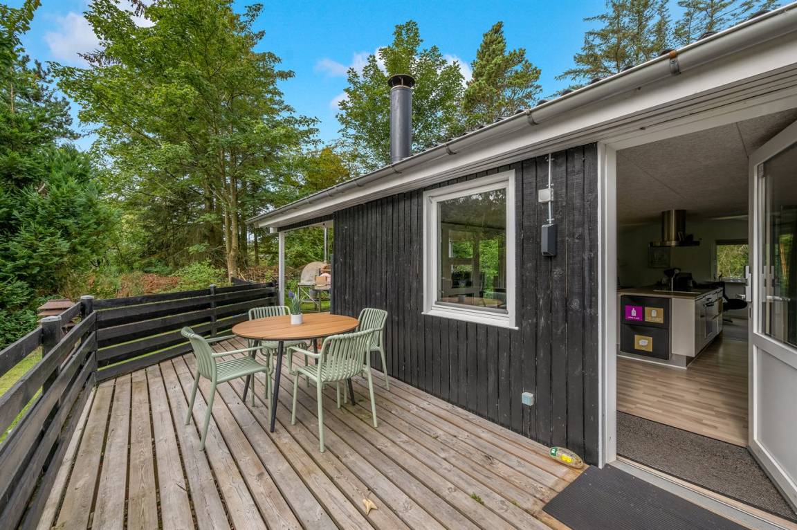 Vom hellen und freundlichen Wohn-Küchenbereich hast du Zugang zur schönen Terrasse. Bringst du kleine Kinder oder einen Hund mit, ist dieses Ferienhaus besonders ideal für dich, da das Grundstück eingezäunt ist und Kinder und Hund frei spielen können.