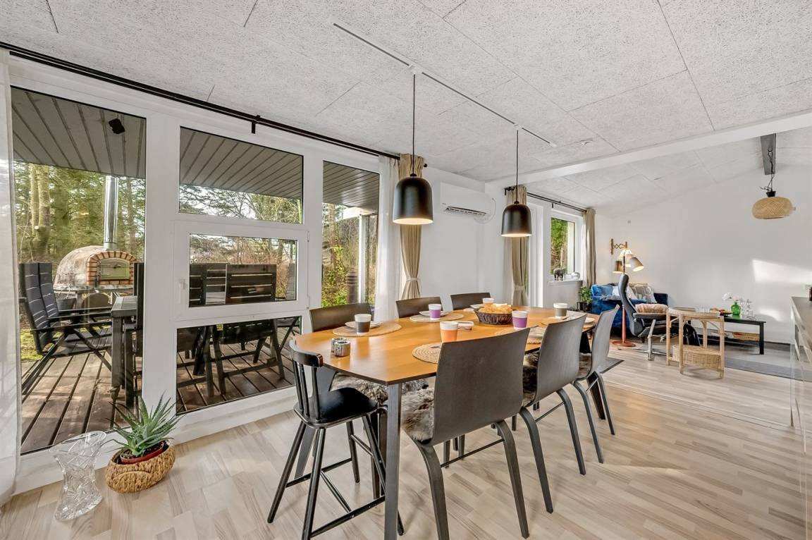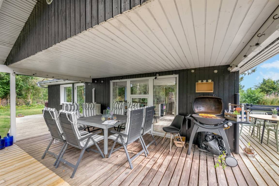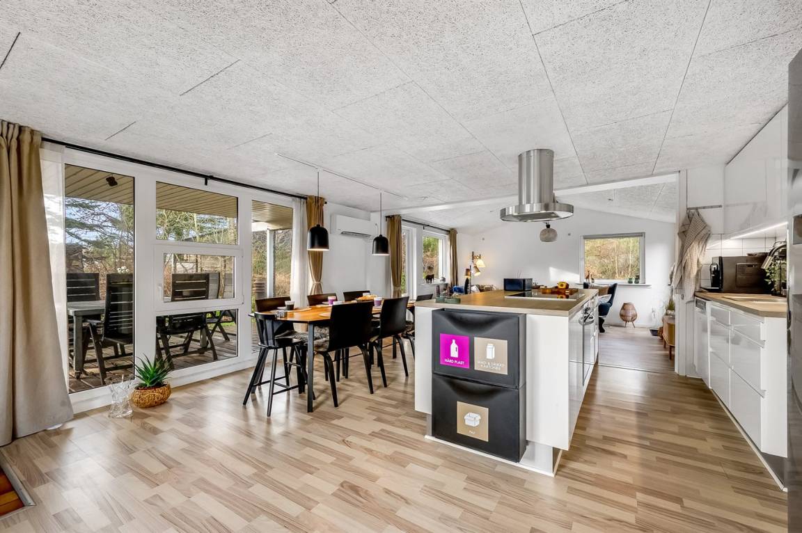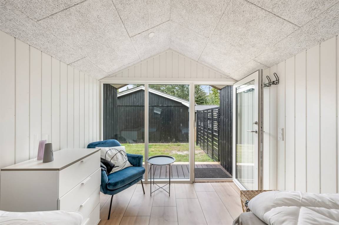 Vom hellen und freundlichen Wohn-Küchenbereich hast du Zugang zur schönen Terrasse. Bringst du kleine Kinder oder einen Hund mit, ist dieses Ferienhaus besonders ideal für dich, da das Grundstück eingezäunt ist und Kinder und Hund frei spielen können.